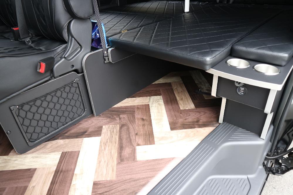 オプションサイドレールテーブル フルフラットベット展開 2列目ワゴンGL純正2名シート 3列目ワゴンGL純正シート取り外し IF-WB8後ろ向き2名専用ベット家具