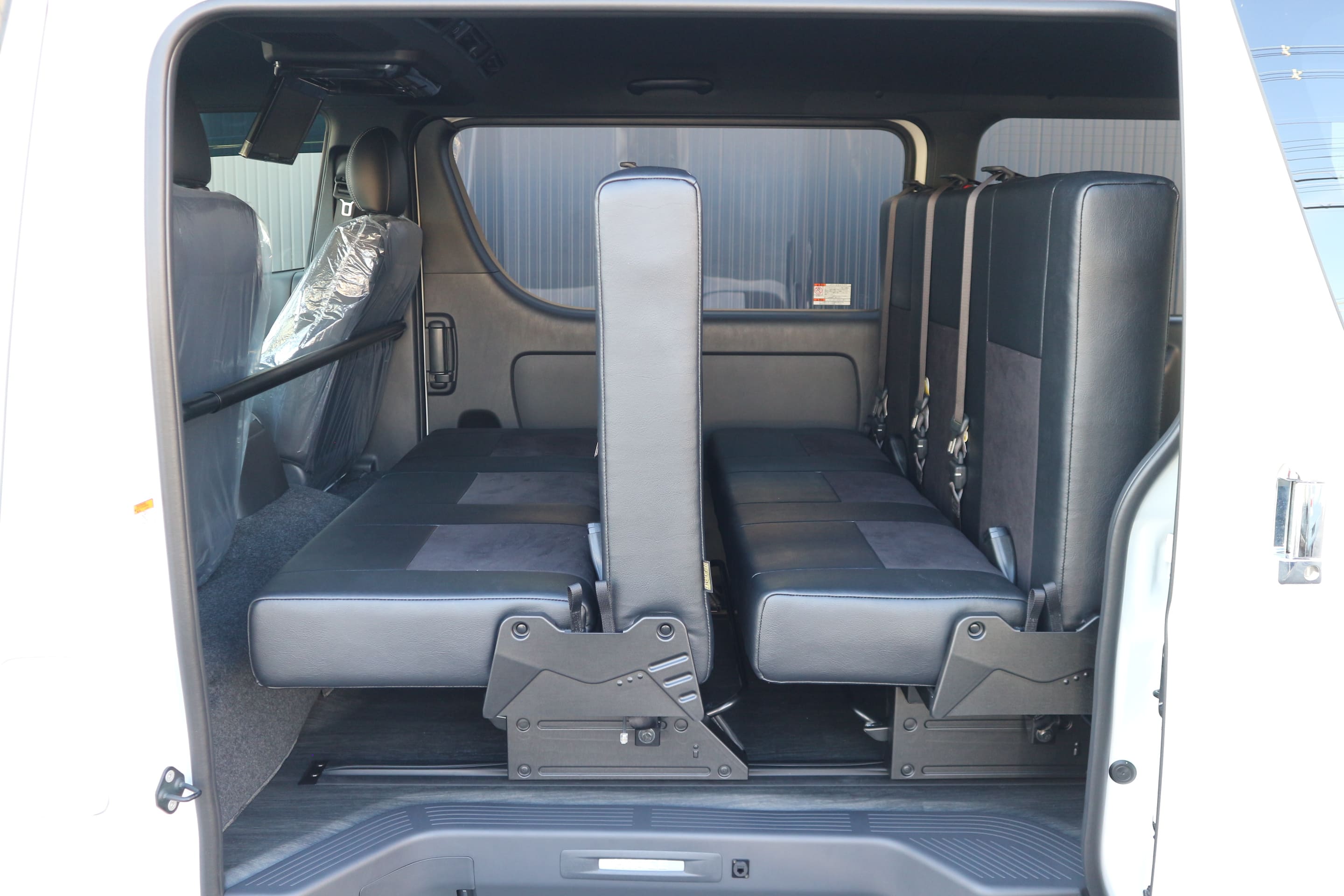 HOME > ギャラリー:IF-VR8/IF-SW8: REVOシート2脚1・4ナンバーのまま8人乗りor3・5ナンバー乗用車登録8人乗り > IF-VR8 200系6型ハイエースバンS-GLダークプライムU ナローボディー T-REVOシート2脚8人乗り施工