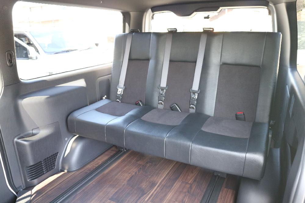 HOME > ギャラリー:IF-VR8/IF-SW8: REVOシート2脚1・4ナンバーのまま8人乗りor3・5ナンバー乗用車登録8人乗り > IF-SW8 200系7型ハイエースバンS-GLダークプライムU ナローボディー T-REVOシート2脚8人乗り施工