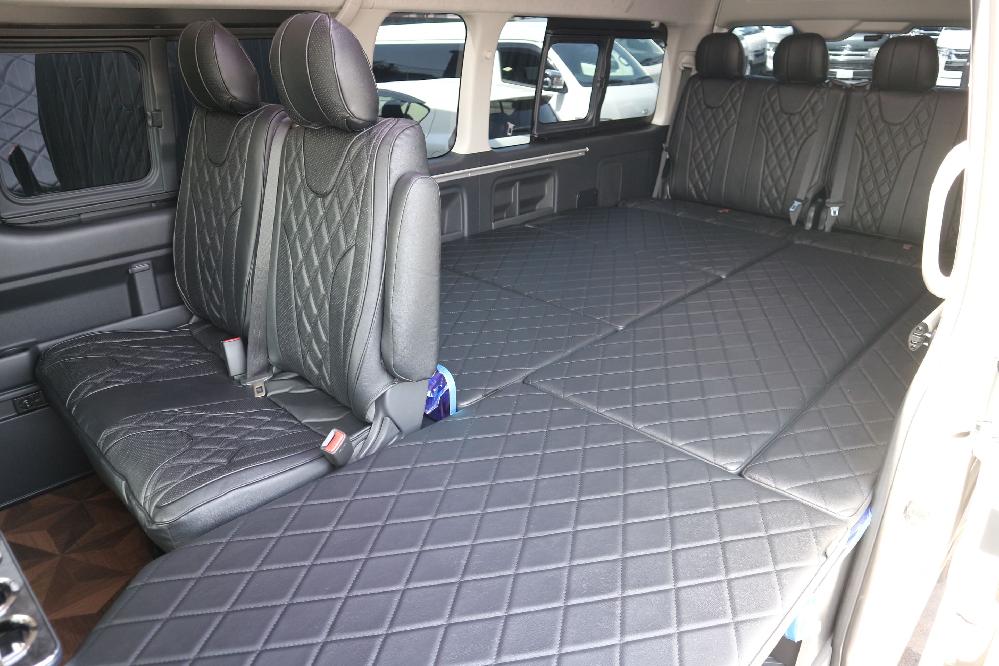 HOME > ギャラリー:IF-WB8 : ハイエースワゴンGL前向き8名後ろ向き2名10人乗り対面ラウンジベット家具 > IF-WB8 200系7型ハイエースコミューターGL スーパーロング 前向き8名後ろ向き2名10人乗り対面ラウンジベッド家具施工