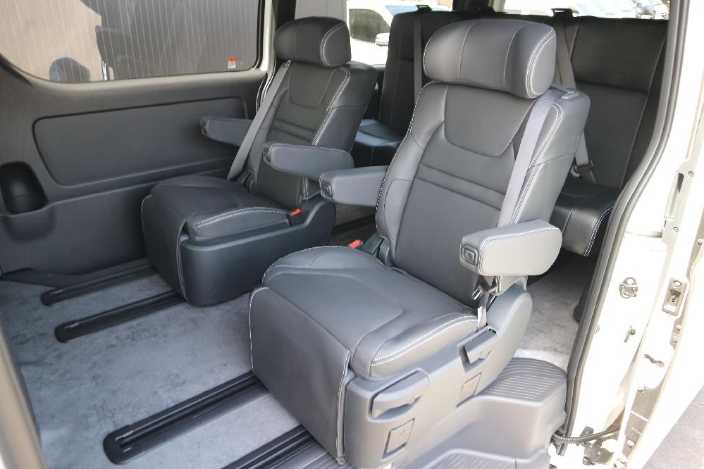 HOME > ギャラリー:IF-WR10 : 正規3ナンバーワゴン乗用車登録10人乗り > IF-WR10 200系7型ハイエースバンS-GLダークプライムU ワイドボディー キャプテンシート2脚T-REVOシート2脚10人乗り施工