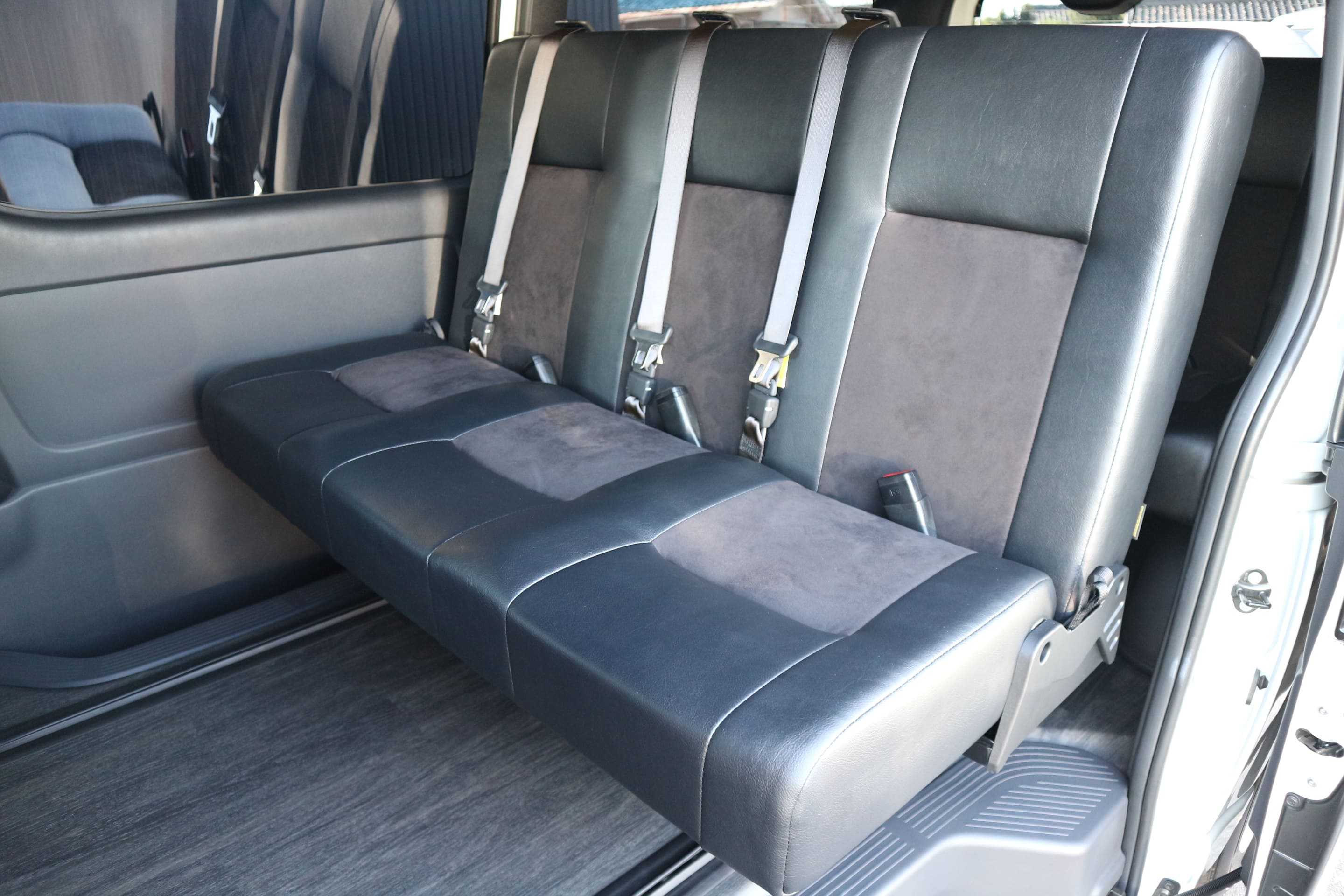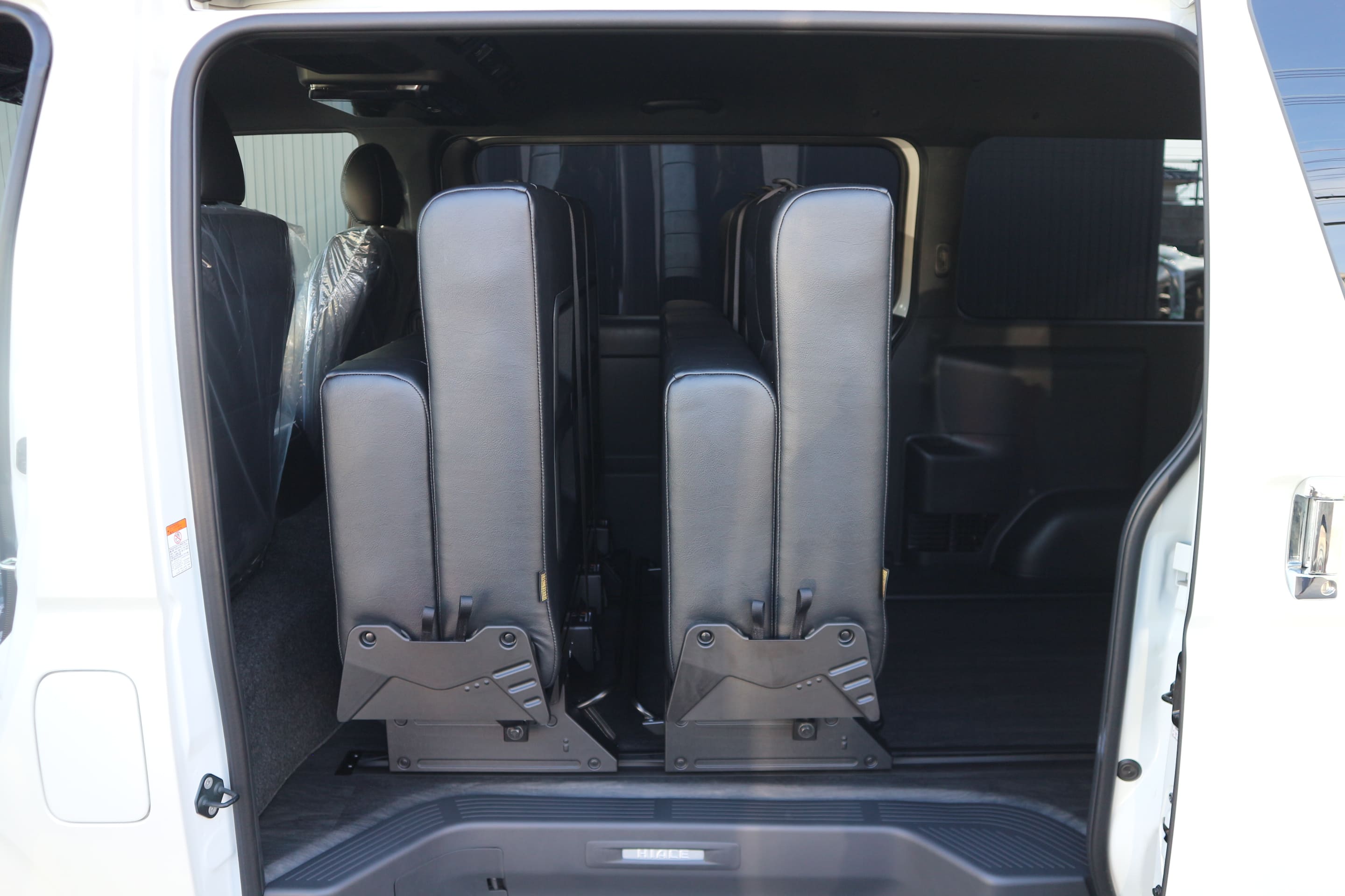 HOME > ギャラリー:IF-VR8/IF-SW8: REVOシート2脚1・4ナンバーのまま8人乗りor3・5ナンバー乗用車登録8人乗り > IF-SW8 200系6型ハイエースバンS-GLダークプライムU ナローボディー REVOシート2脚8人乗り施工