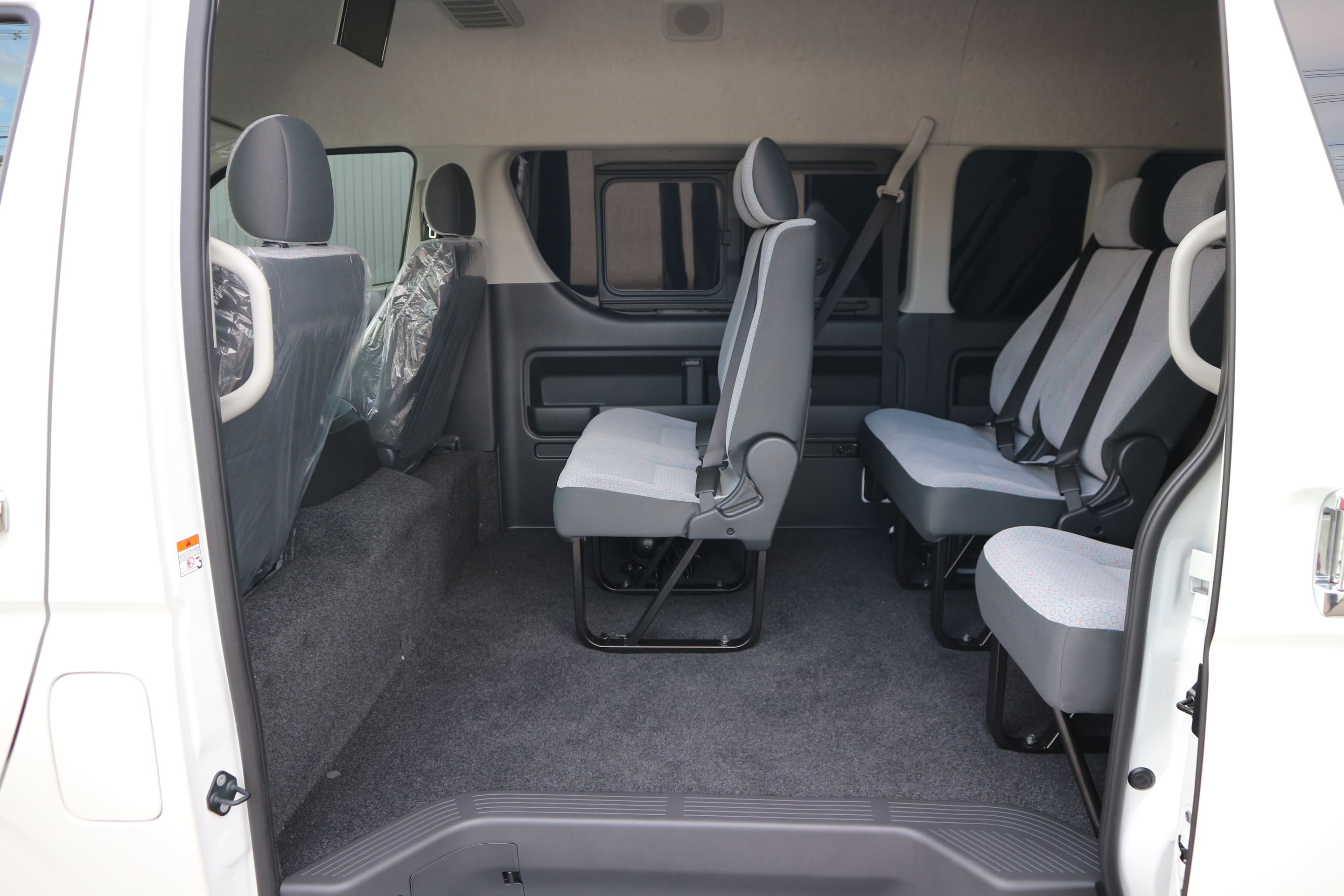 HOME > ギャラリー:IF-EXエクスプレスシリーズ : 正規ステルス2ナンバーから3ナンバーワゴン乗用車登録10人 /2ナンバーから1ナンバーバン貨物登録 > エクスプレスシリーズ 200系7型ハイエースコミューターGL スーパーロングハイルーフ 正規乗用車ワゴン登録10人乗り施工