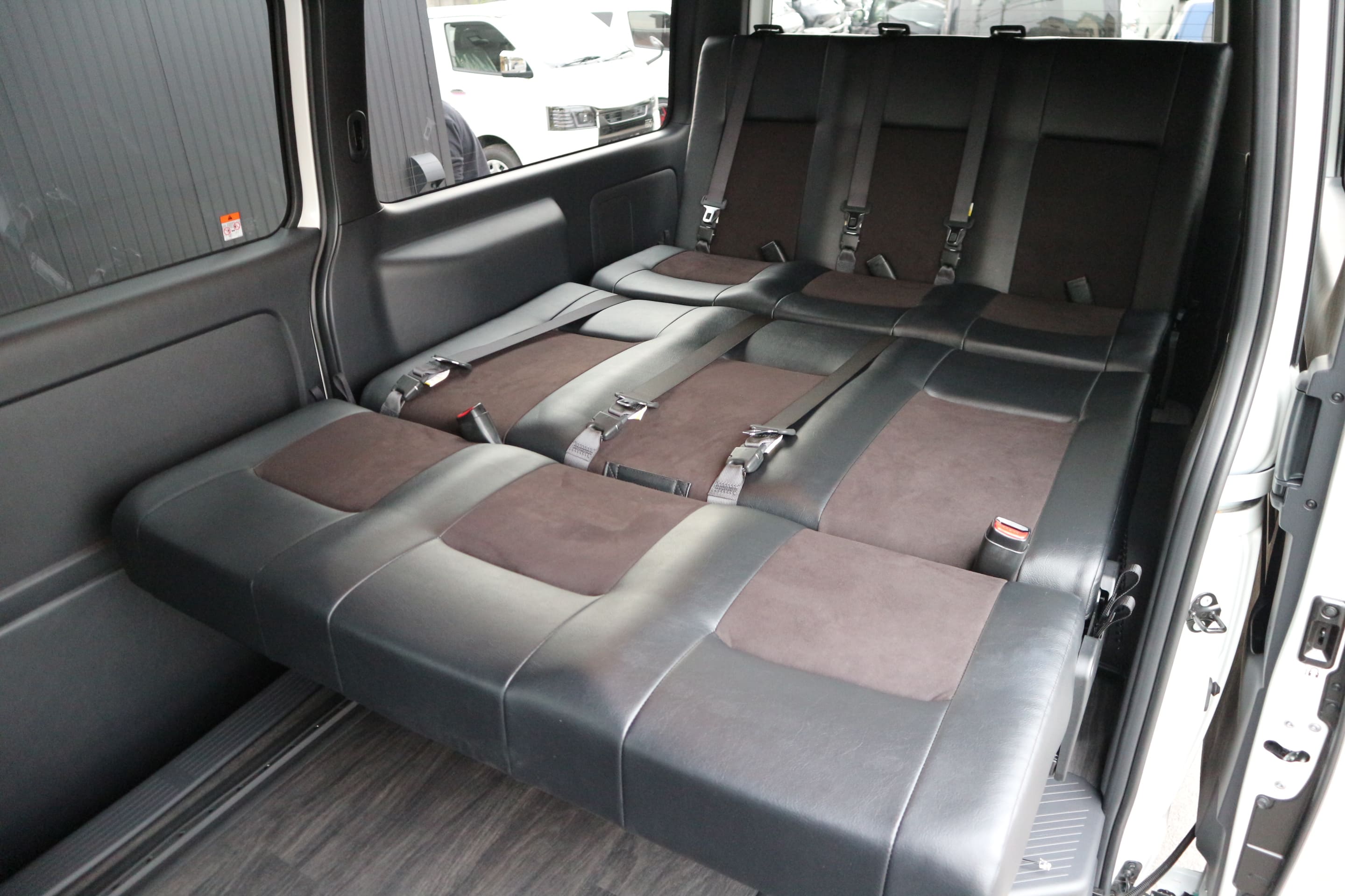 HOME > ギャラリー:IF-VR8/IF-SW8: REVOシート2脚1・4ナンバーのまま8人乗りor3・5ナンバー乗用車登録8人乗り > IF-VR8 200系7型ハイエースバンS-GLダークプライムU ナローボディー T-REVOシート2脚8人乗り施工
