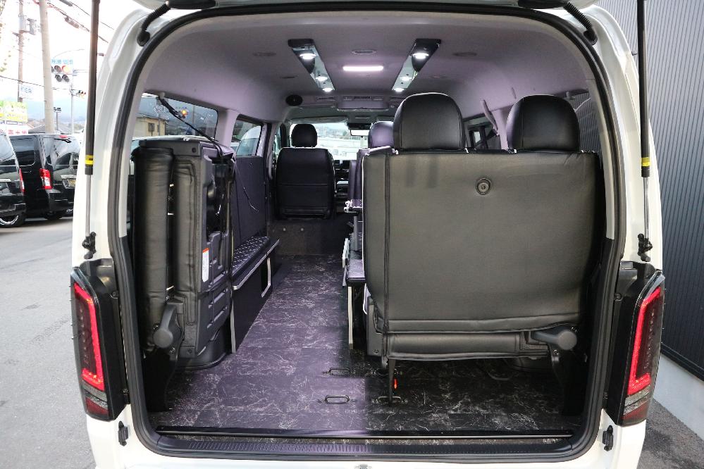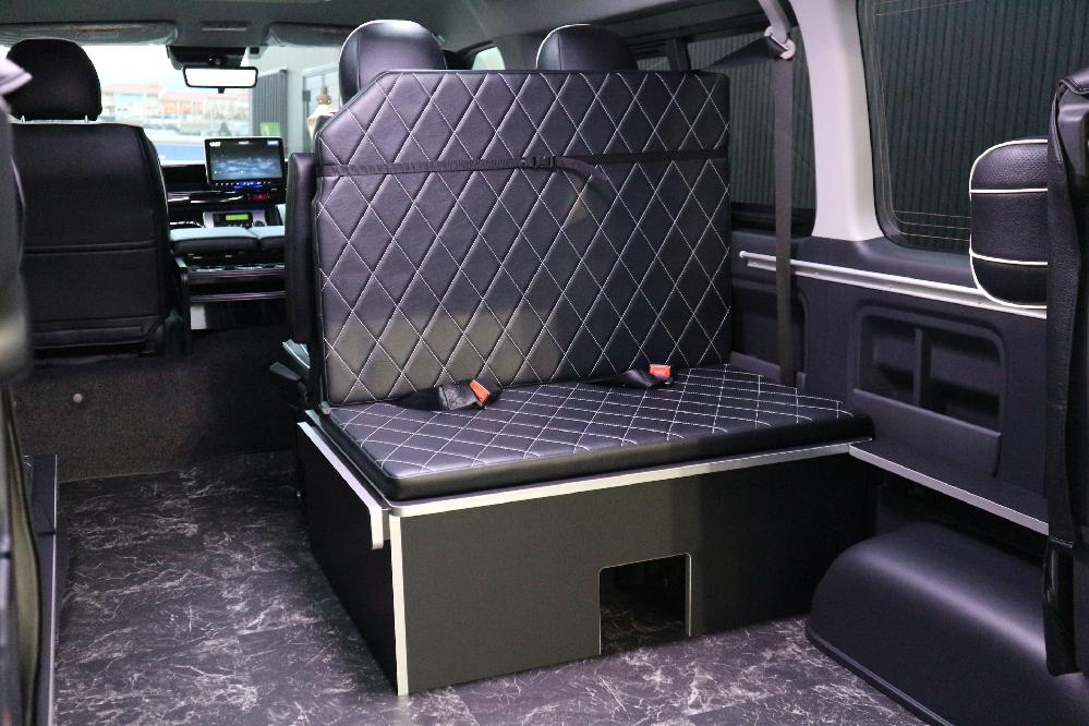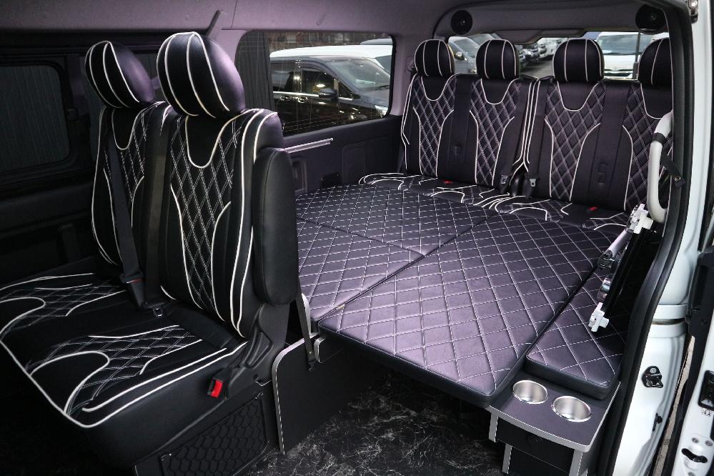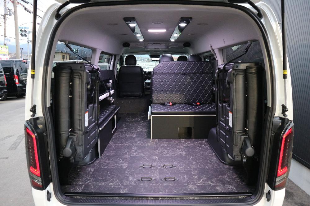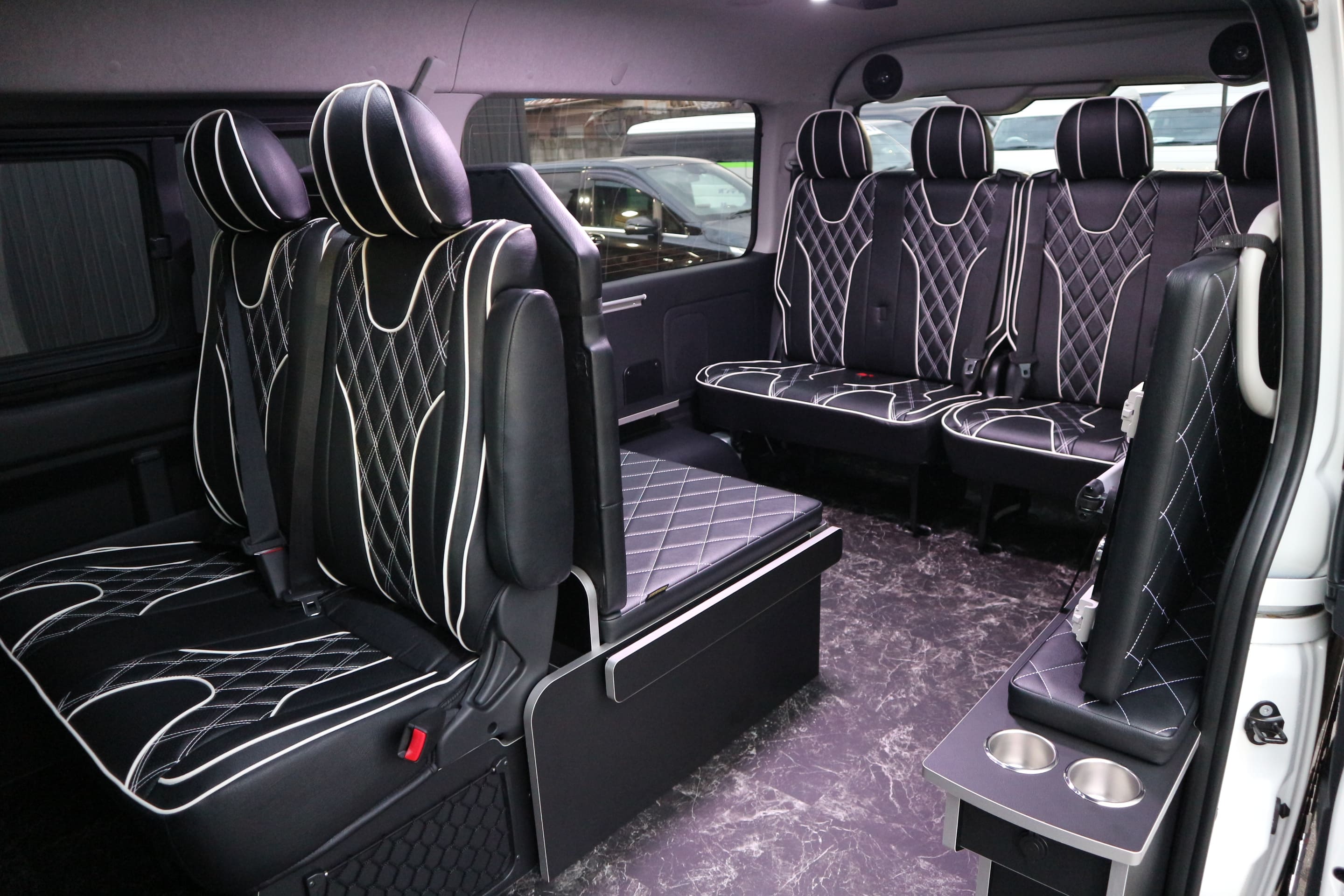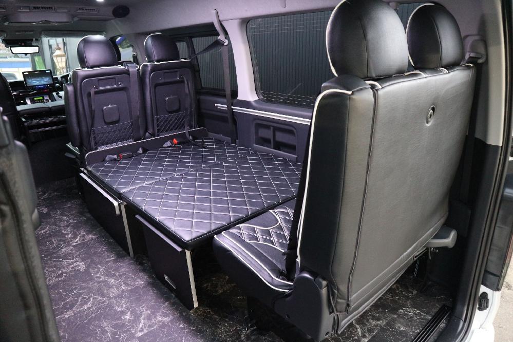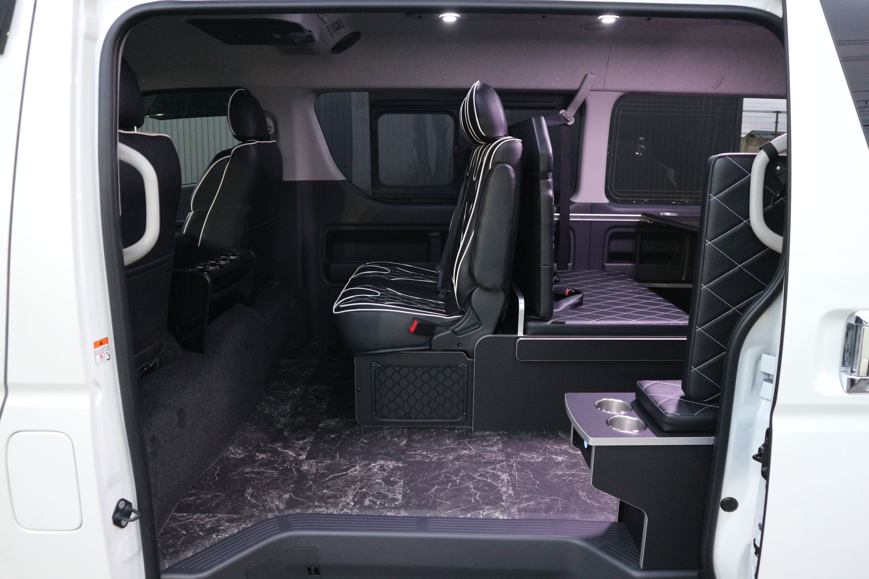 HOME > ギャラリー:IF-WB8 : ハイエースワゴンGL前向き8名後ろ向き2名10人乗り対面ラウンジベット家具 > IF-WB8 200系ハイエースワゴンGL ワイドボディー 前向き8名後ろ向き2名10人乗り対面ラウンジベッド家具施工