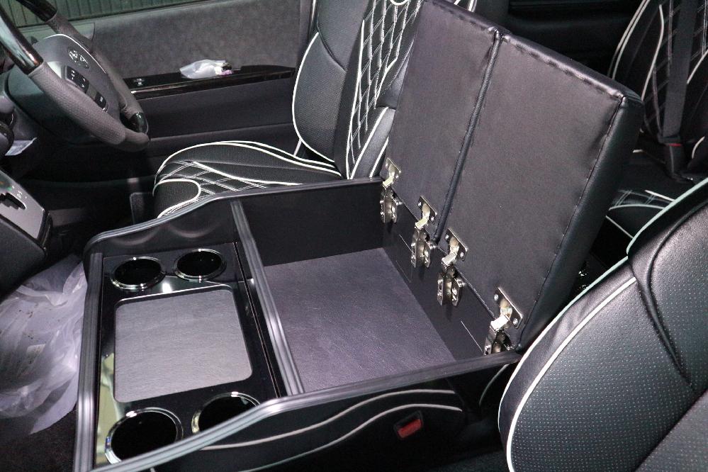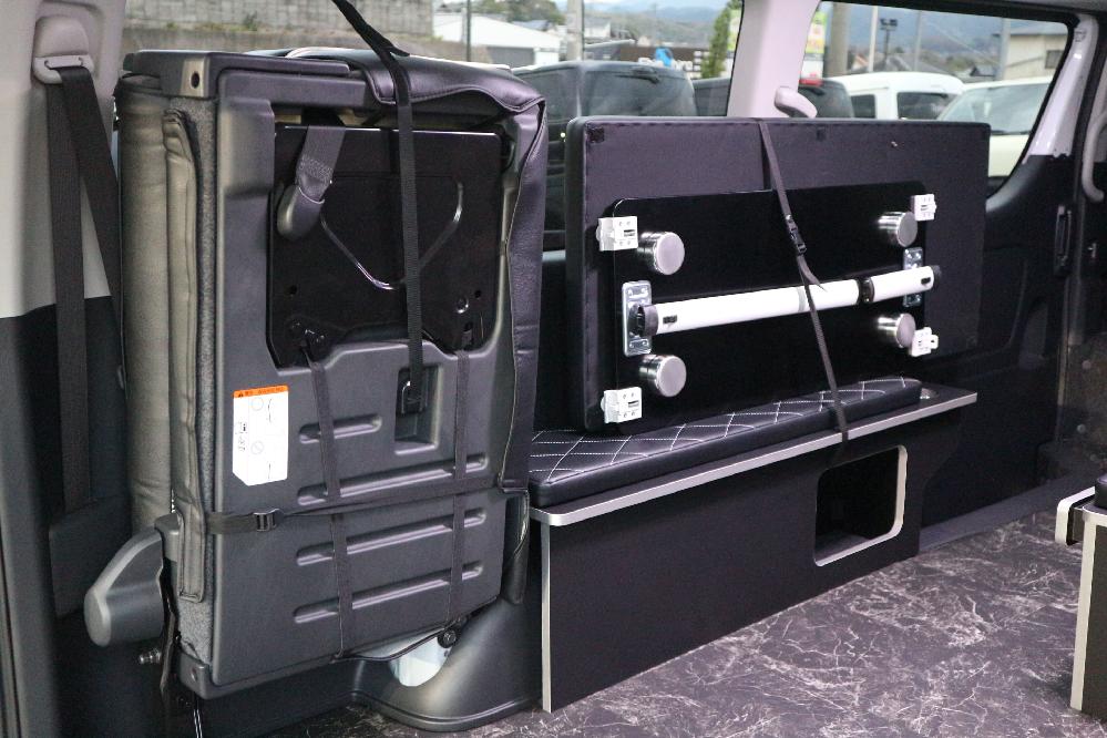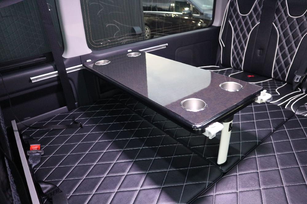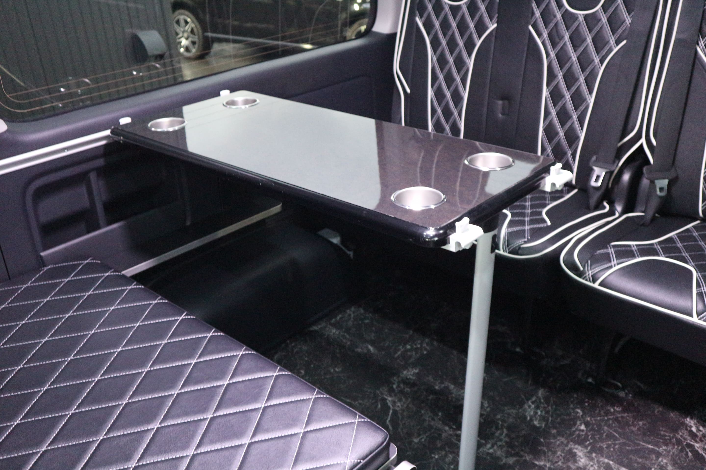 オプションサイドレールテーブル(ロングレッグ) 対面ラウンジ展開 2列目ワゴンGL純正2名シート 3列目ワゴンGL純正シート取り外し IF-WB8後ろ向き2名専用ベット家具