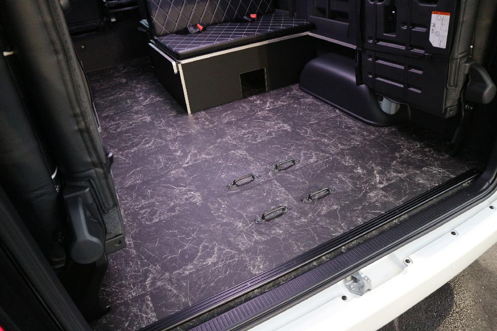 フロアフローリング施工(SDR9163ブリリアントストーン) ロングスライドレール スペアタイヤ取り出し出来ます。 フロアビス打ち無し