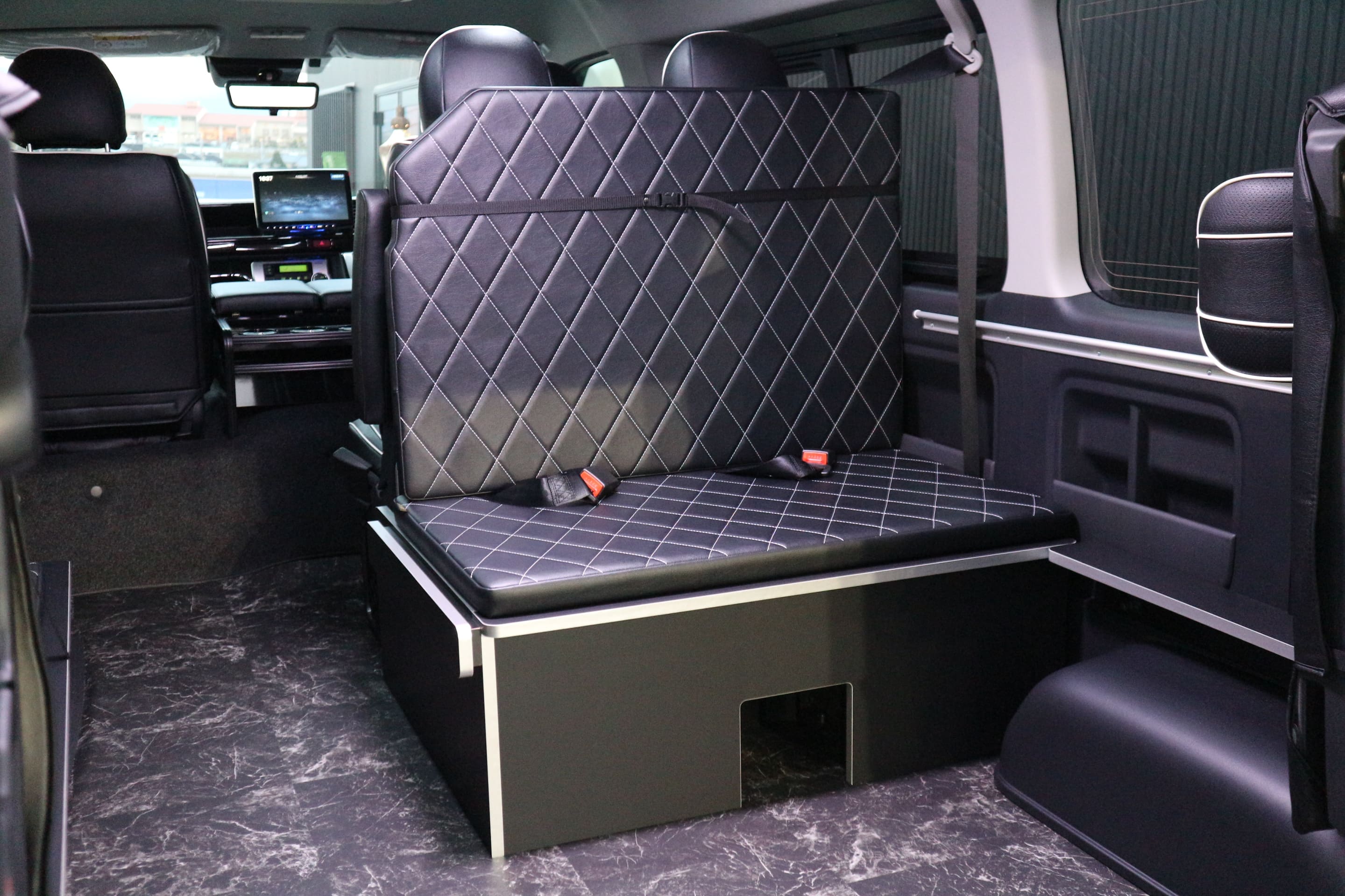 セパレートラウンジ展開 3列目後ろ向き2名シート展開 ベットマット背もたれ展開 後ろ向き専用シートベルト搭載