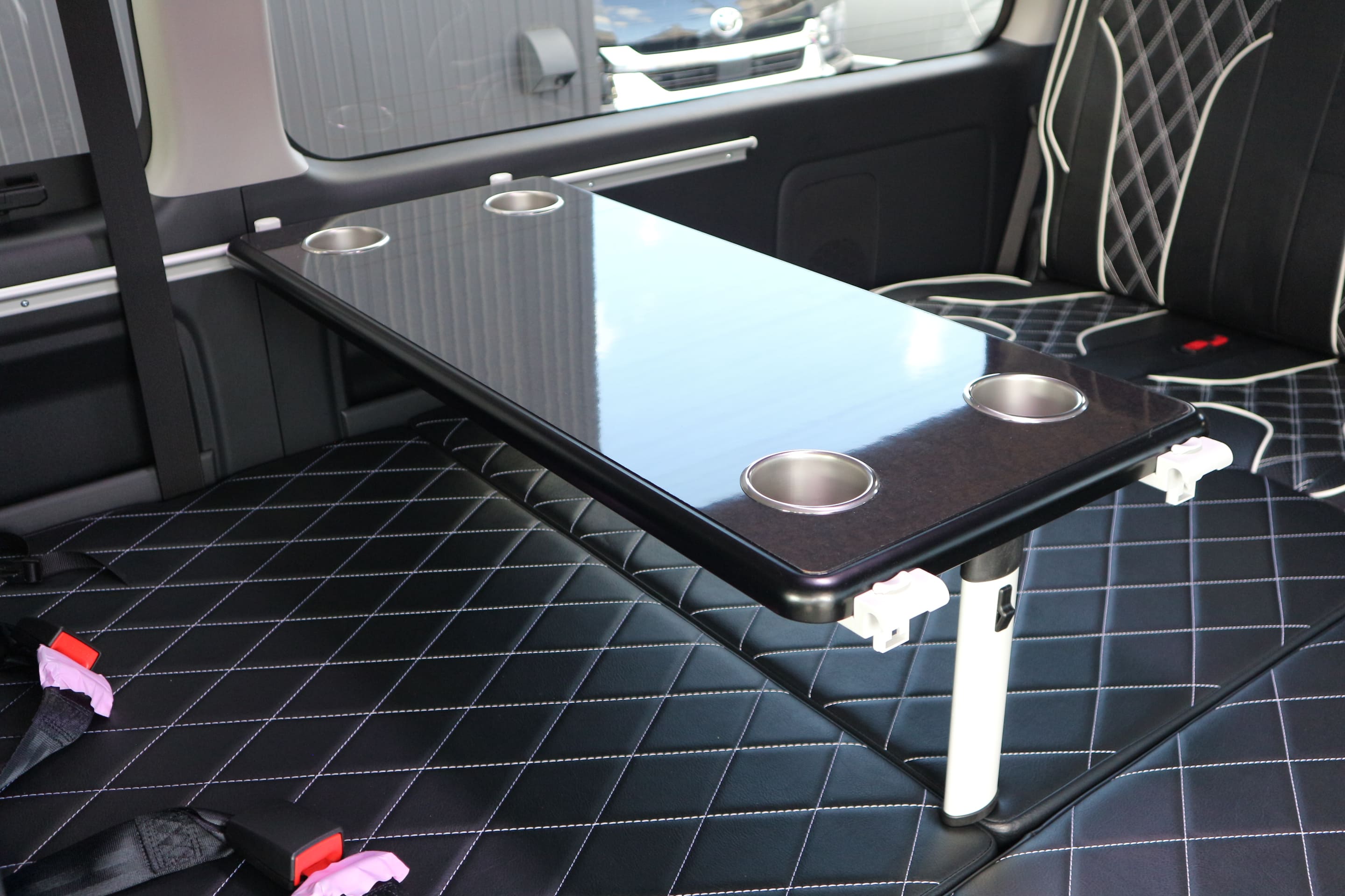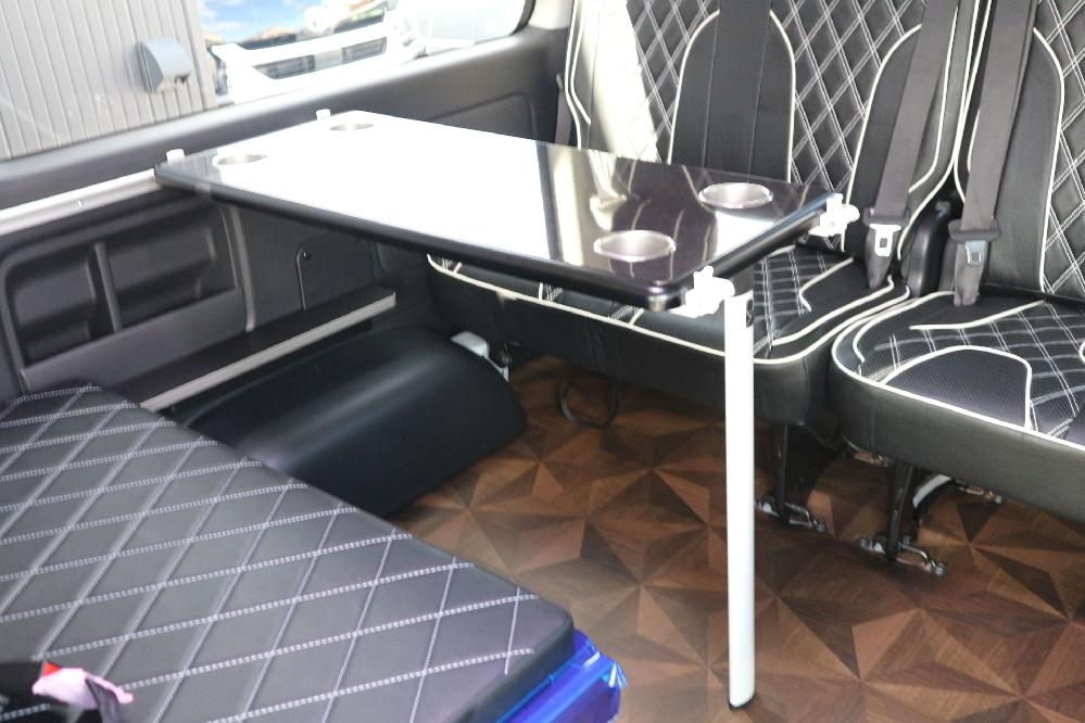 オプションサイドレールテーブル(ロングレッグ) 対面ラウンジ展開 2列目ワゴンGL純正2名シート 3列目ワゴンGL純正シート取り外し IF-WB8後ろ向き2名専用ベット家具