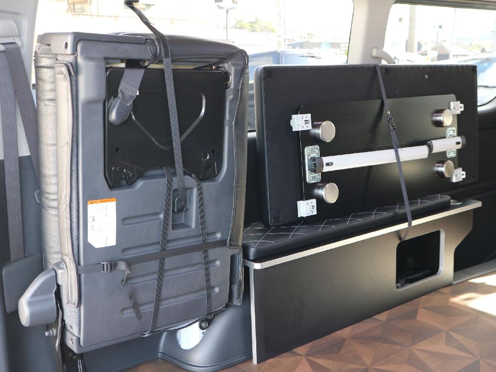 対面ラウンジ展開 2列目ワゴンGL純正2名シート 3列目ワゴンGL純正シート取り外し IF-WB8後ろ向き2名専用ベット家具