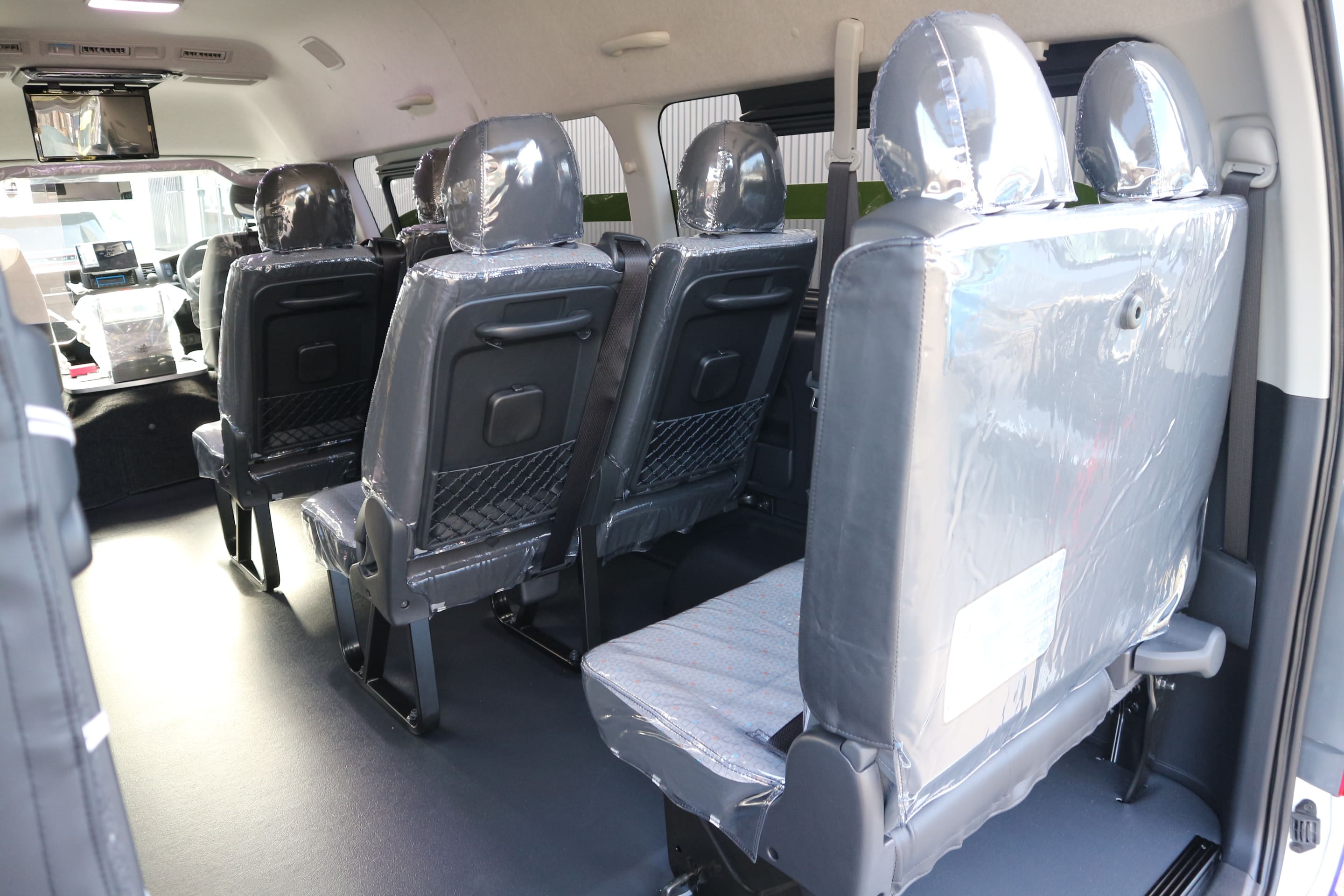 HOME > ギャラリー:IF-EXエクスプレスシリーズ : 正規ステルス2ナンバーから3ナンバーワゴン乗用車登録10人 /2ナンバーから1ナンバーバン貨物登録 > エクスプレスシリーズ 200系7型ハイエースコミューターGL スーパーロングハイルーフ 正規乗用車ワゴン登録10人乗り施工