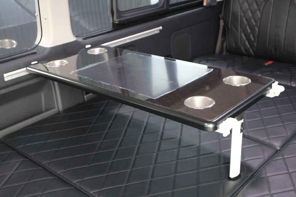 オプションサイドレールテーブル(ロングレッグ) 対面ラウンジ展開 2列目ワゴンGL純正2名シート 3列目ワゴンGL純正シート取り外し IF-WB8後ろ向き2名専用ベット家具