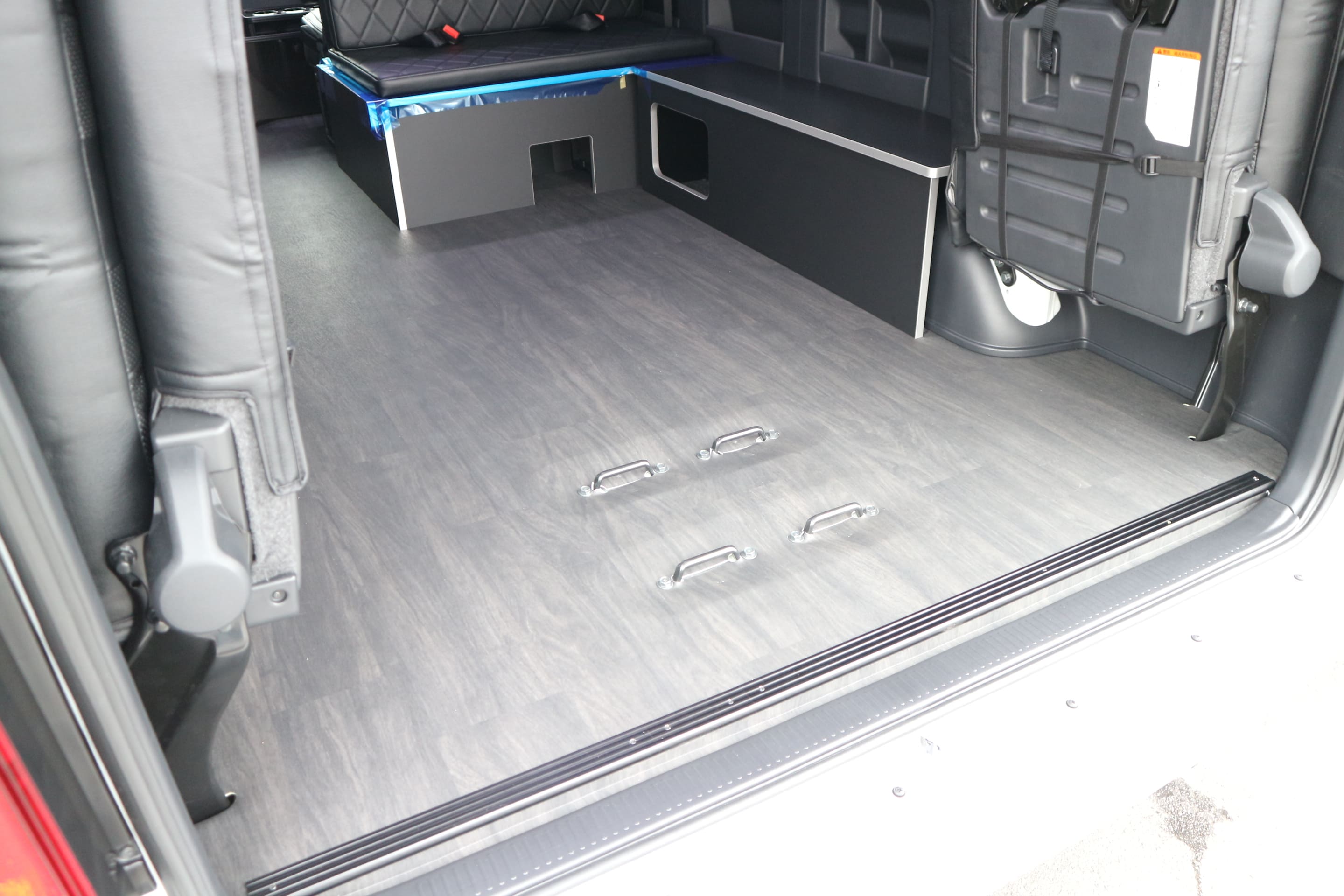 コミューターGL純正4列目セパレート跳ね上げシート ラゲージスペース確保 フロアフローリング施工(SDR9166カリンクロ) スペアタイヤ取り出し出来ます。 フロアビス打ち無し