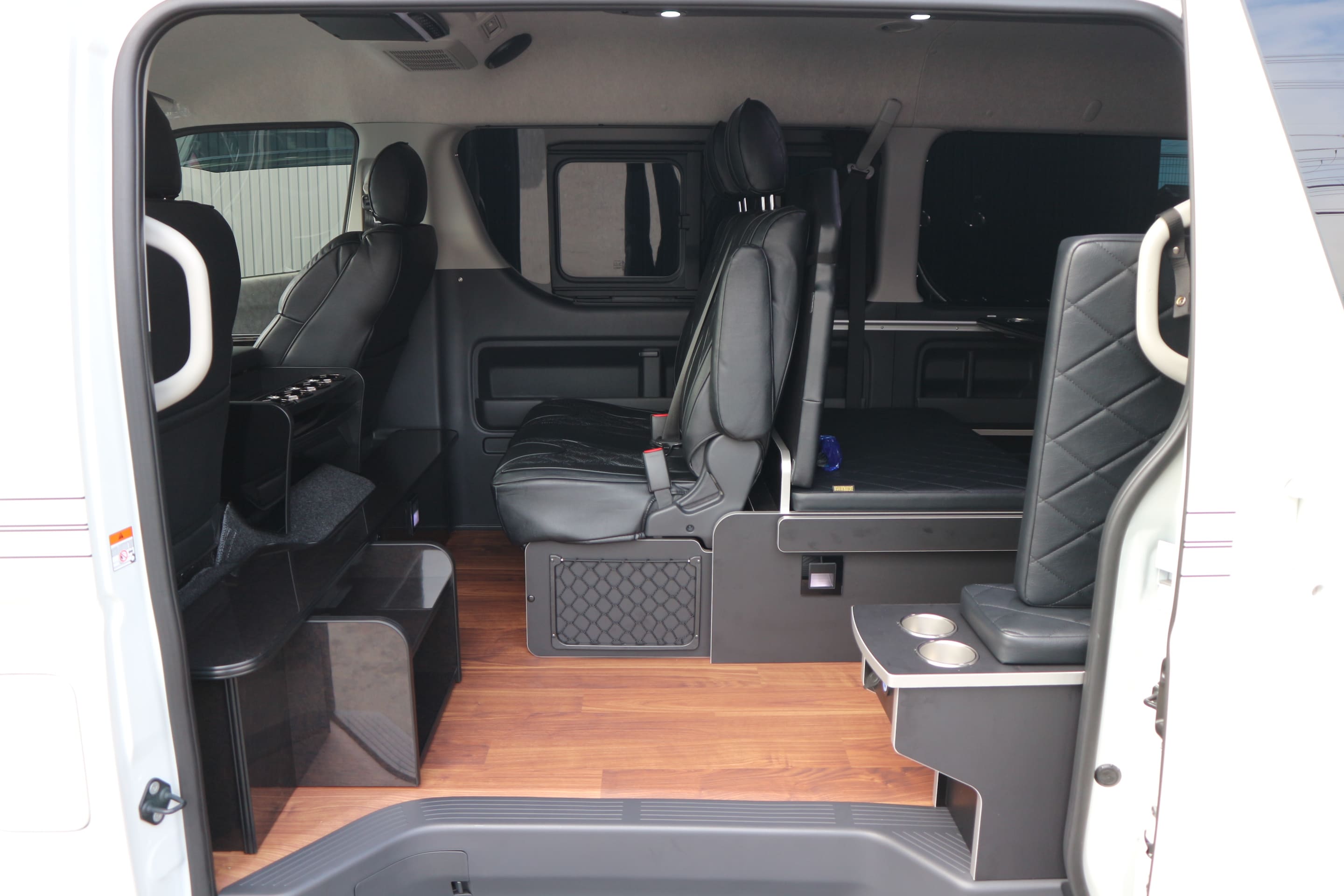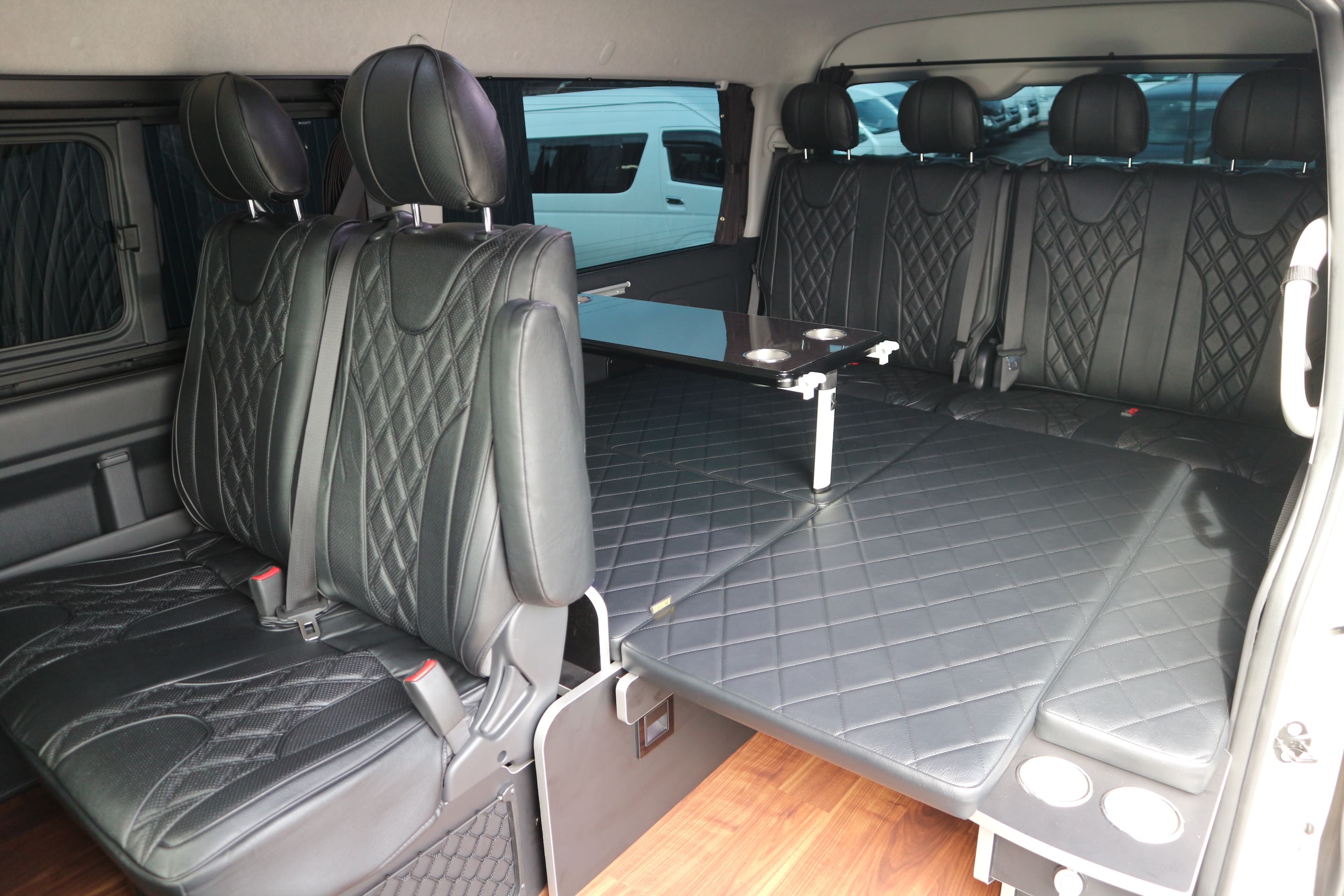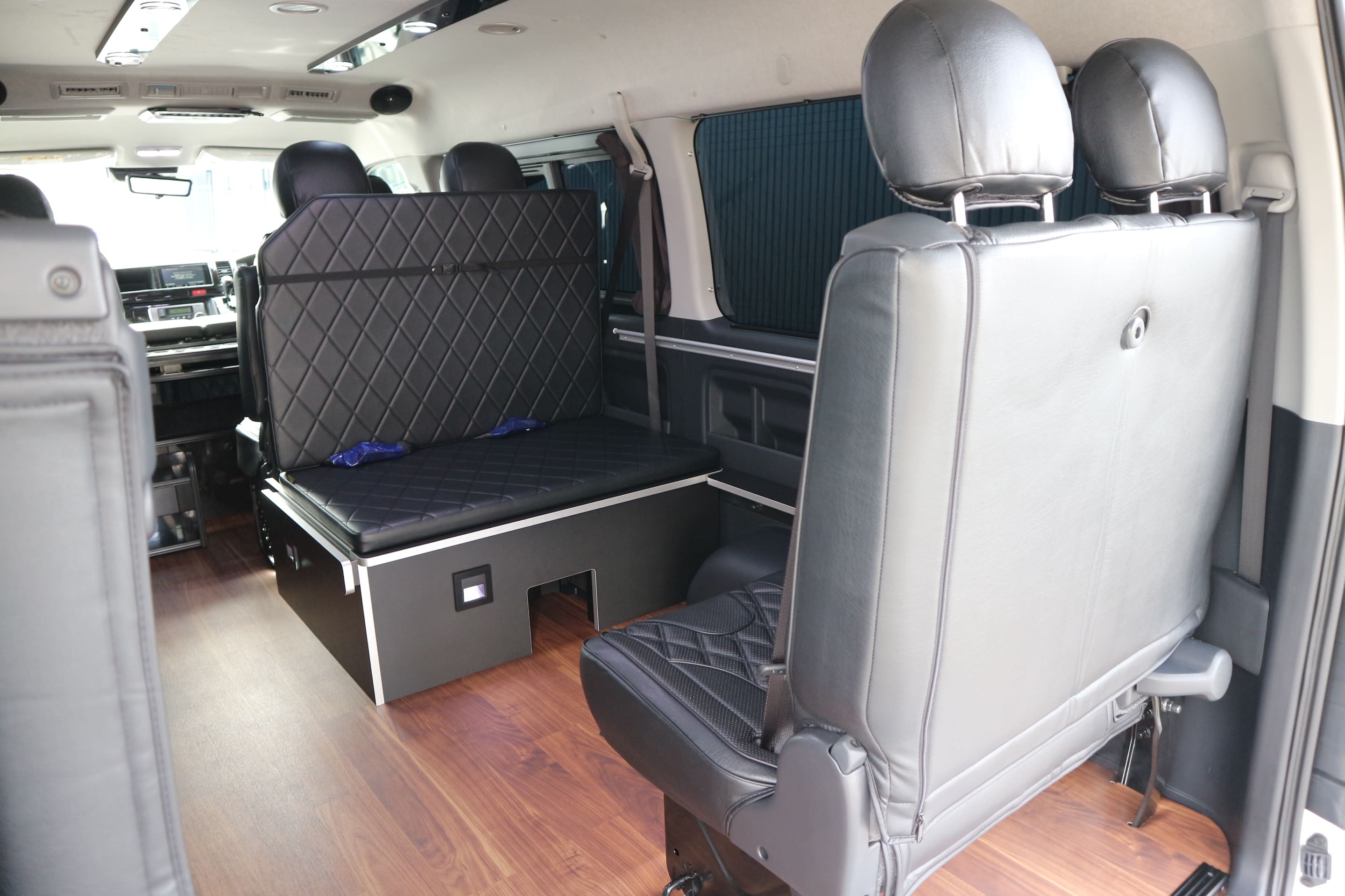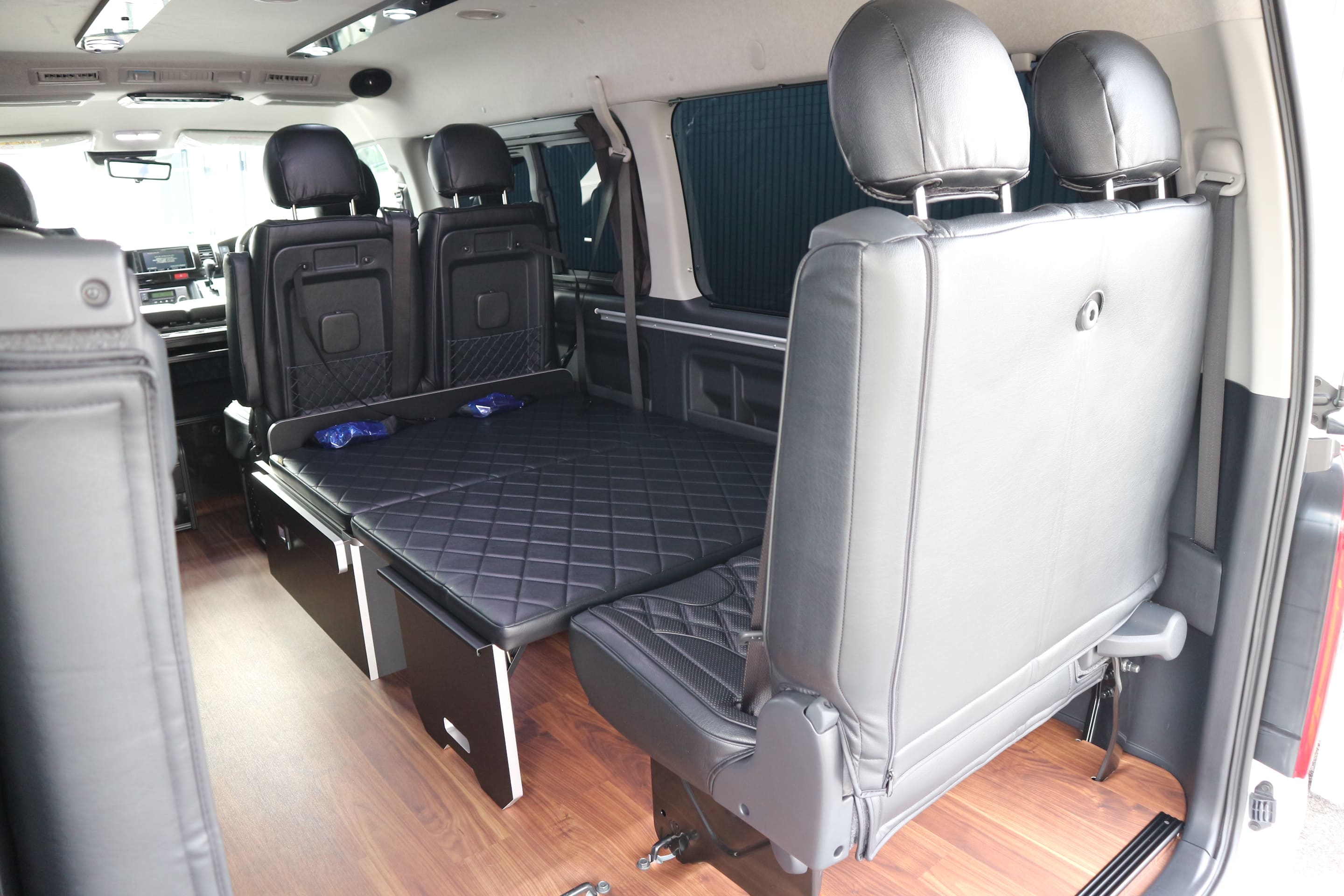 HOME > ギャラリー:IF-WB8 : ハイエースワゴンGL前向き8名後ろ向き2名10人乗り対面ラウンジベット家具 > IF-WB8リビングサルーン 200系ハイエースワゴンGL ワイドボディー 前向き8名後ろ向き2名10人乗り対面ラウンジベッド家具施工