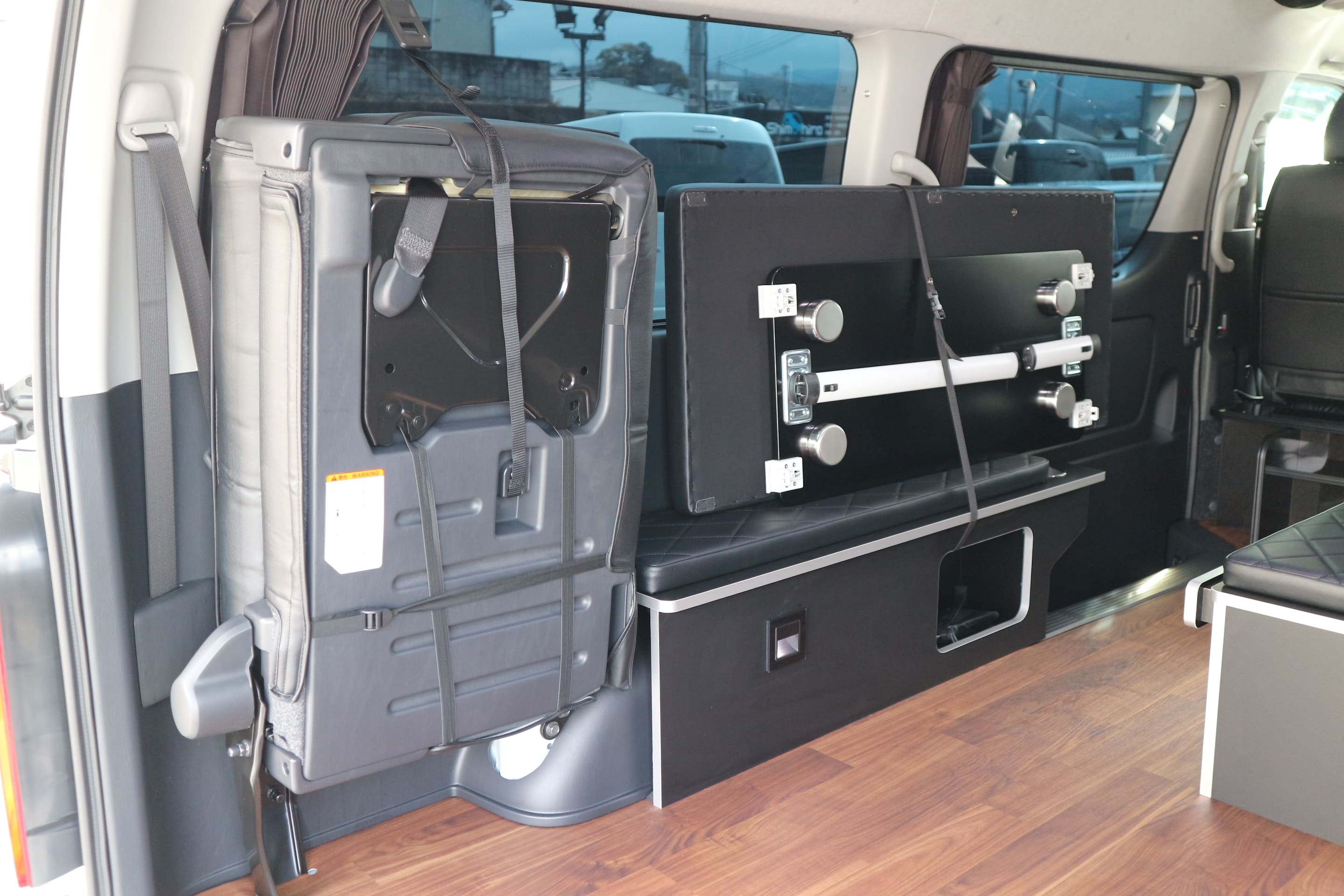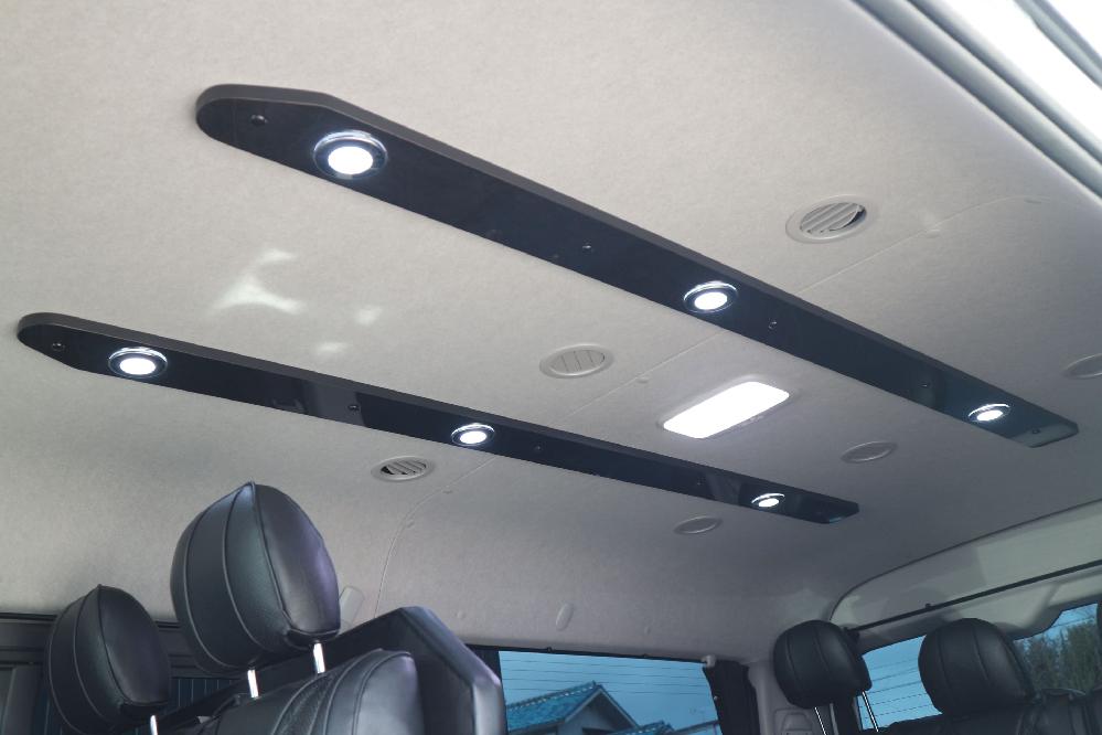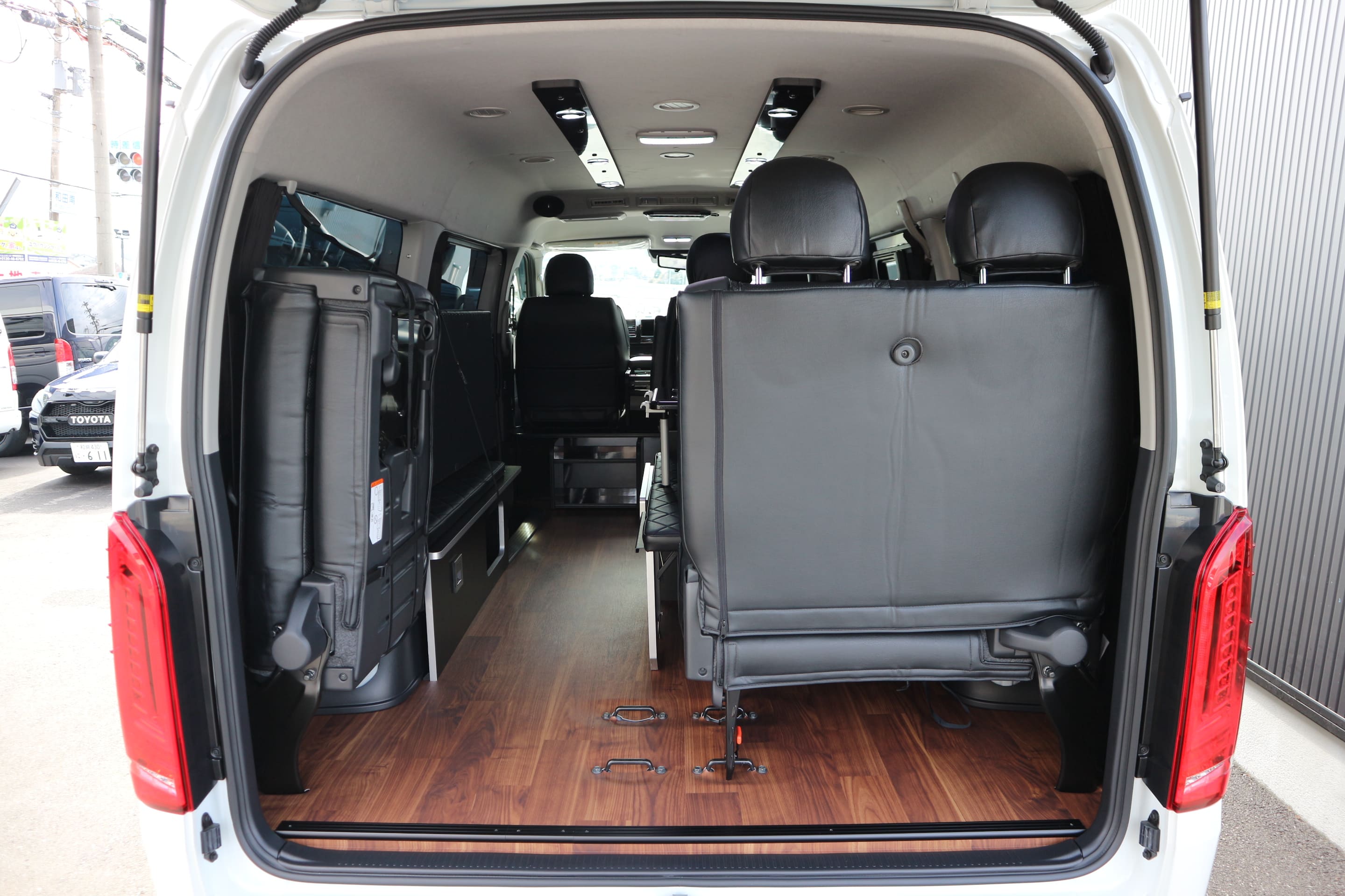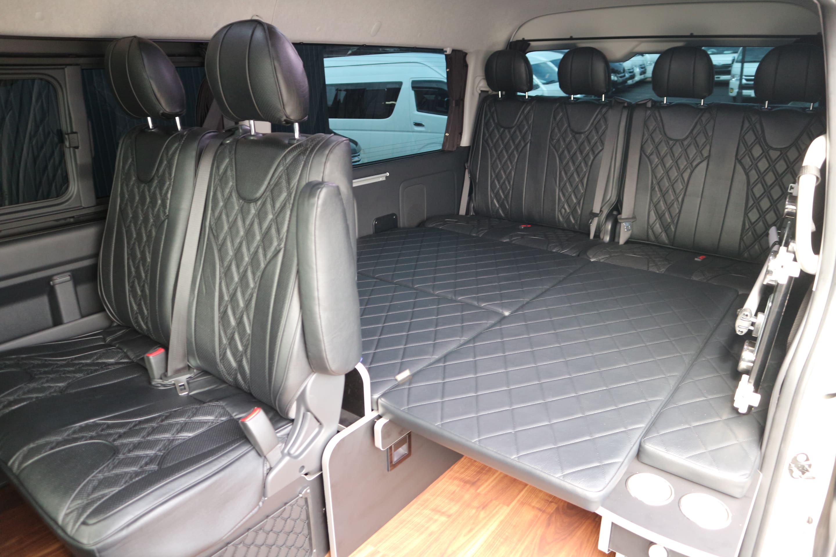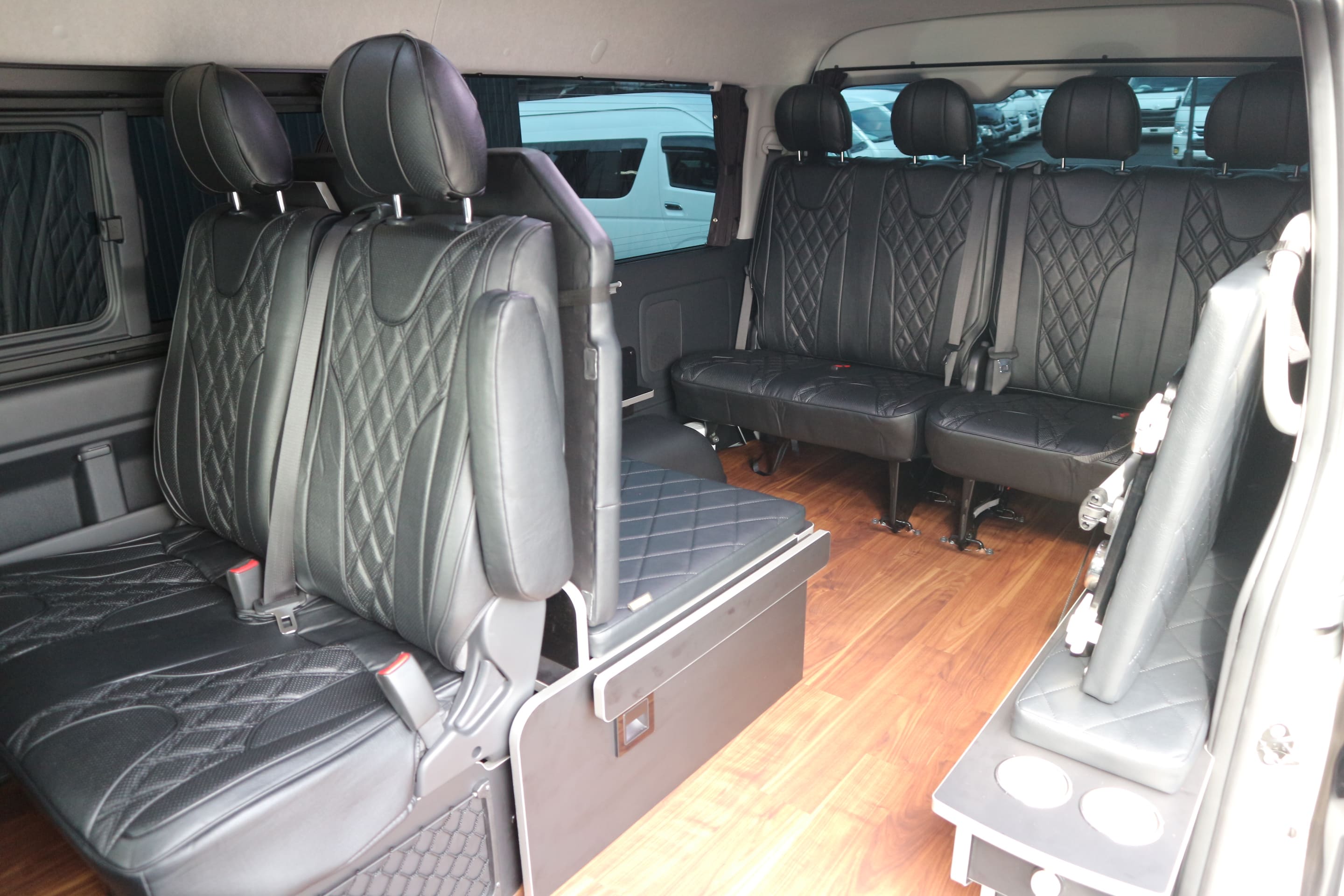 HOME > ギャラリー:IF-WB8 : ハイエースワゴンGL前向き8名後ろ向き2名10人乗り対面ラウンジベット家具 > IF-WB8リビングサルーン 200系ハイエースワゴンGL ワイドボディー 前向き8名後ろ向き2名10人乗り対面ラウンジベッド家具施工