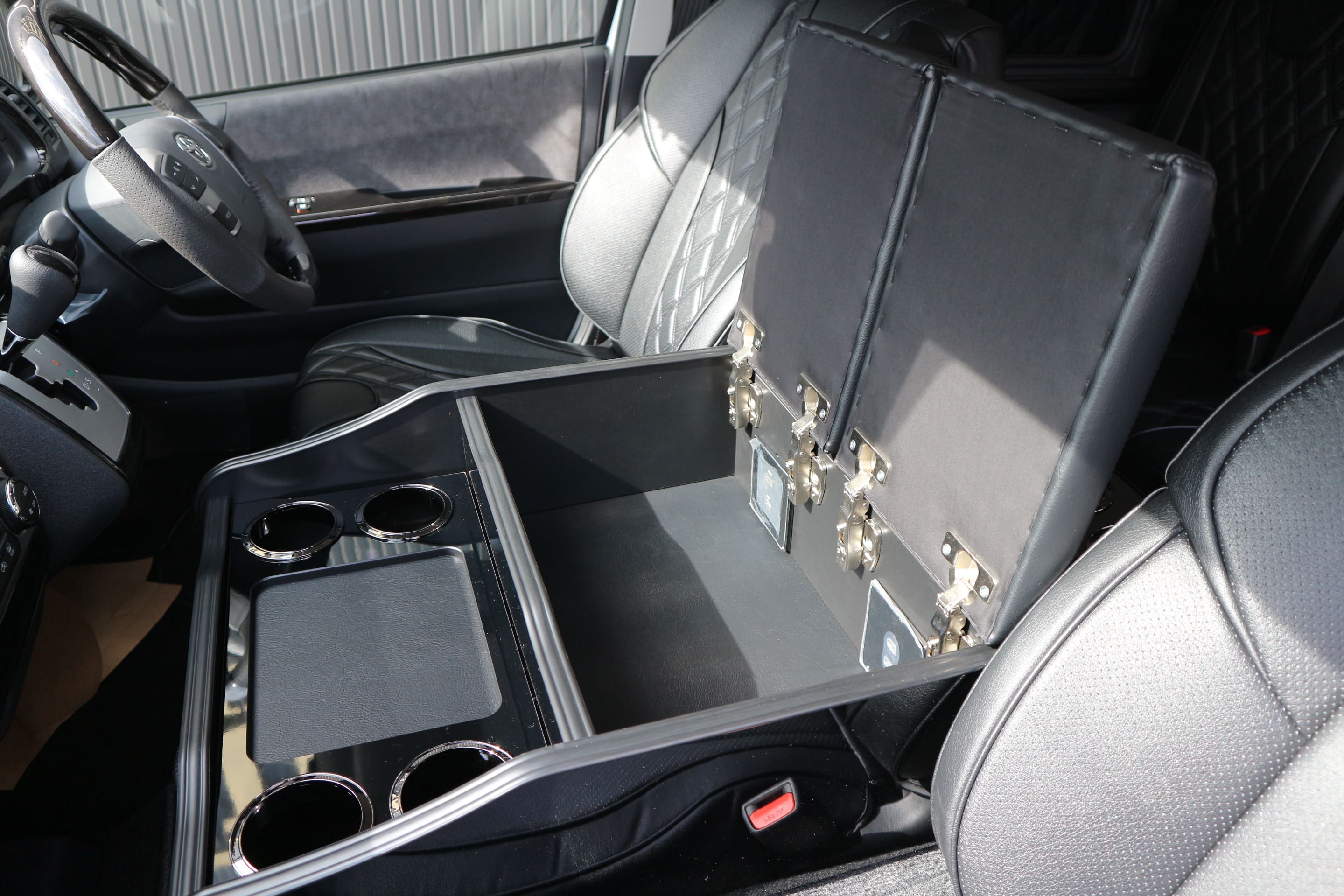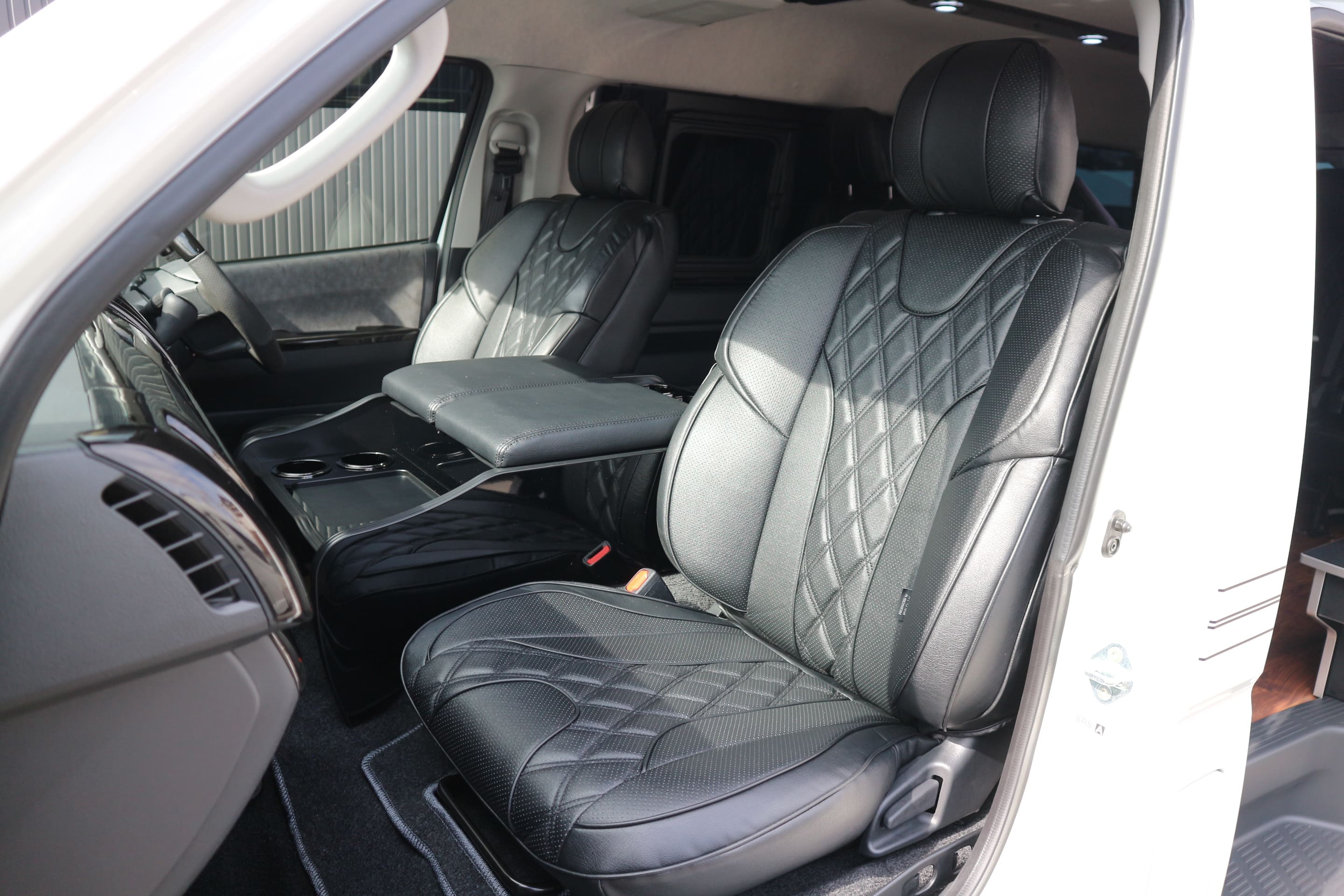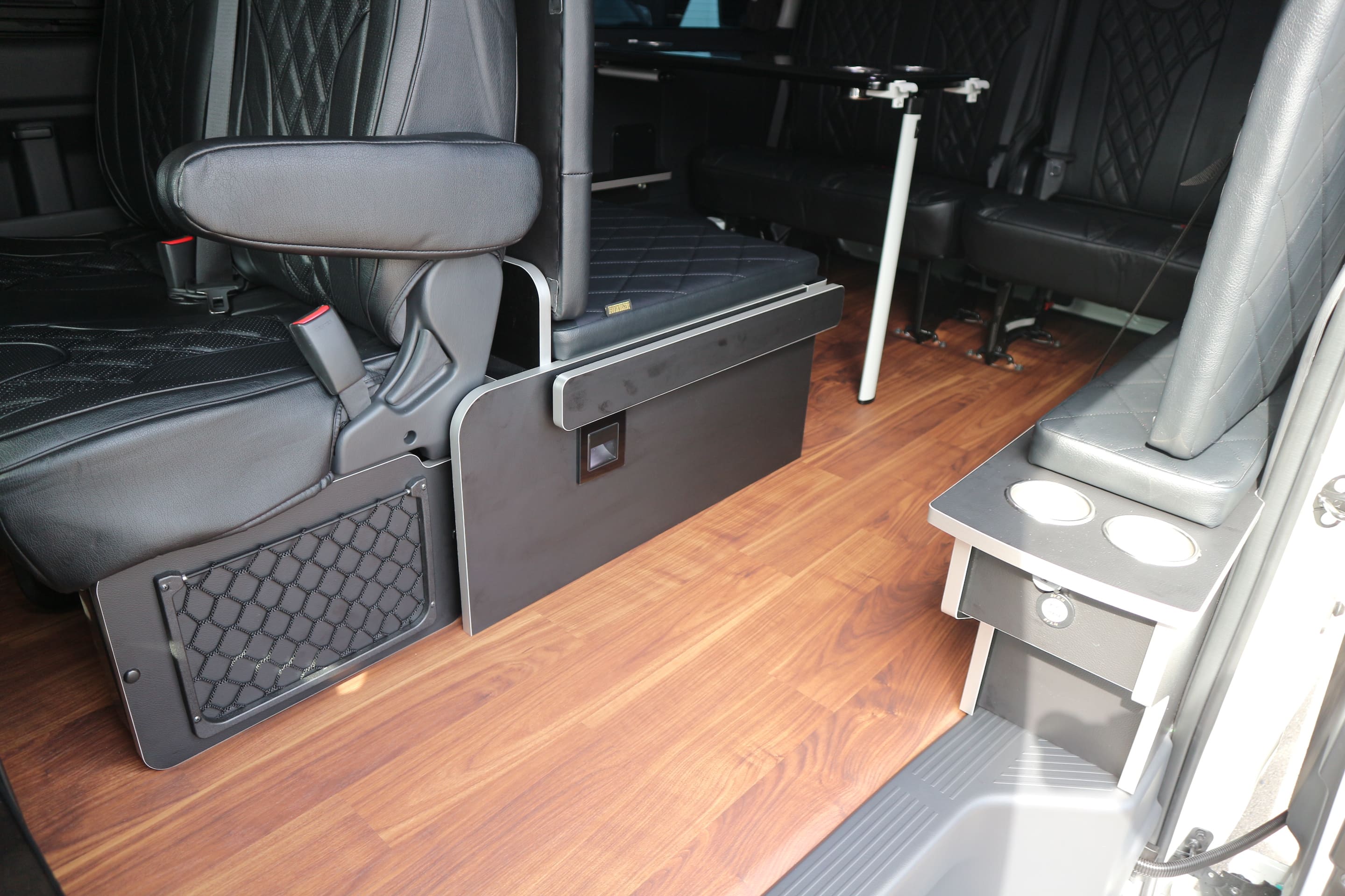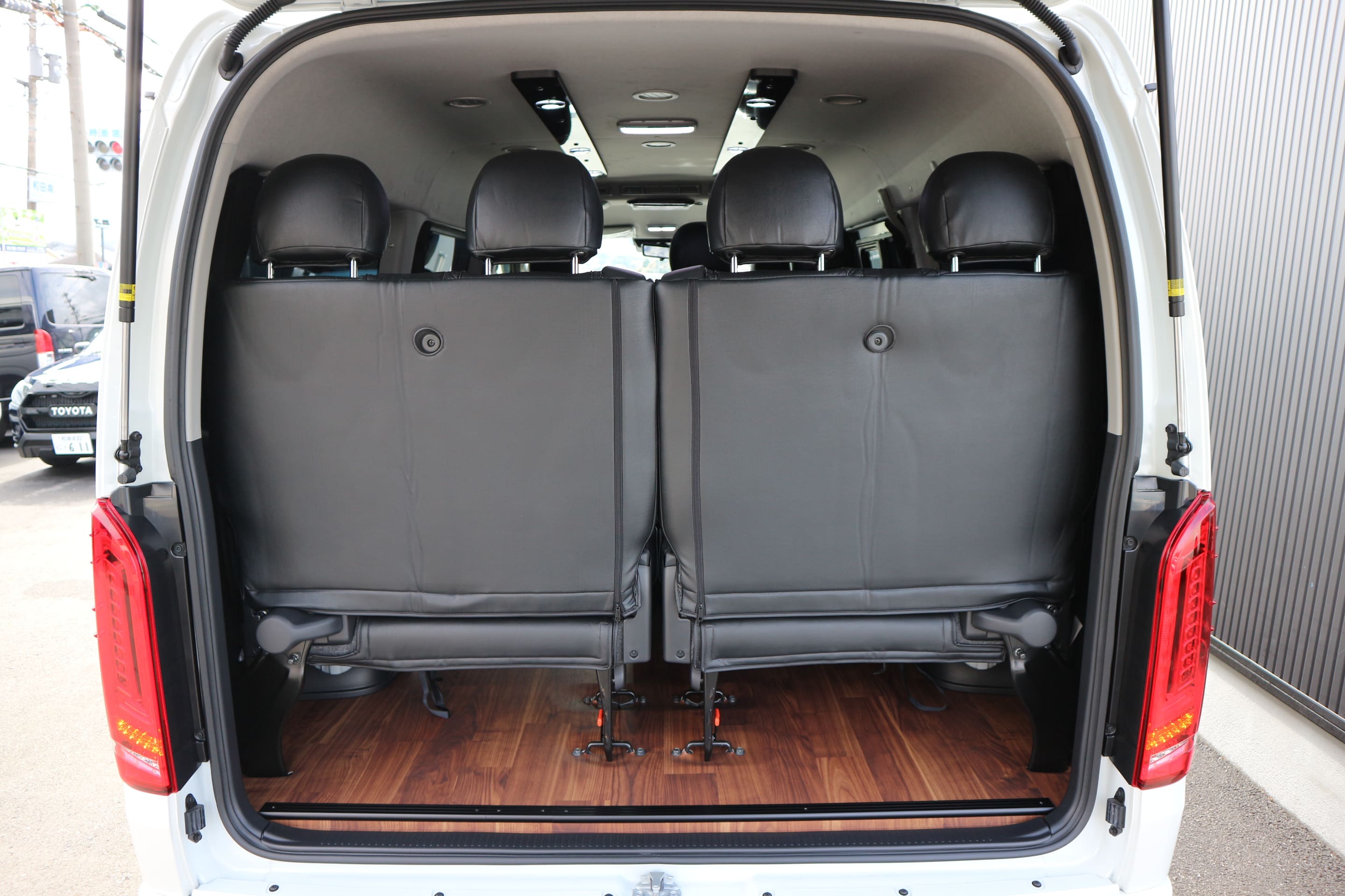 HOME > ギャラリー:IF-WB8 : ハイエースワゴンGL前向き8名後ろ向き2名10人乗り対面ラウンジベット家具 > IF-WB8リビングサルーン 200系ハイエースワゴンGL ワイドボディー 前向き8名後ろ向き2名10人乗り対面ラウンジベッド家具施工