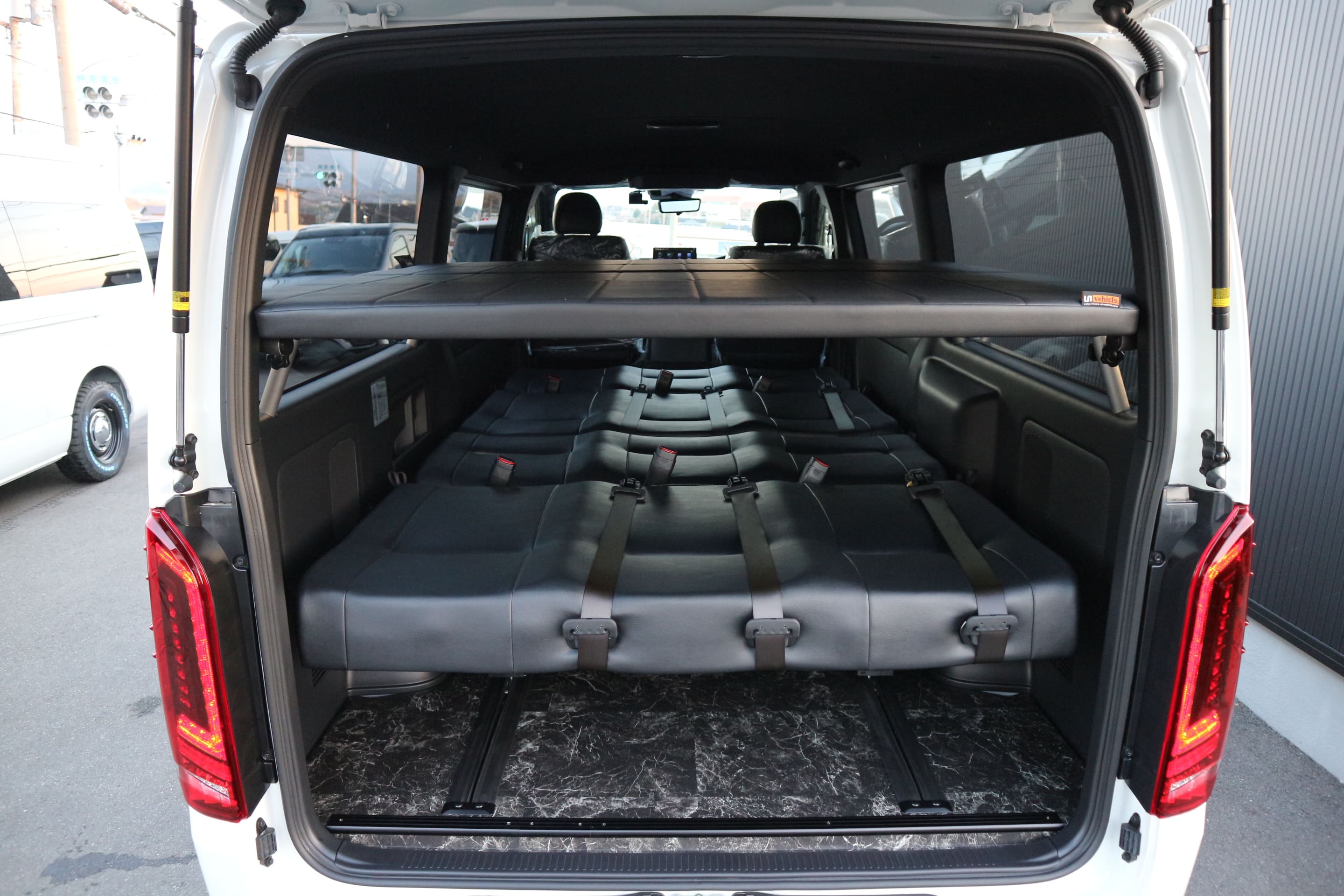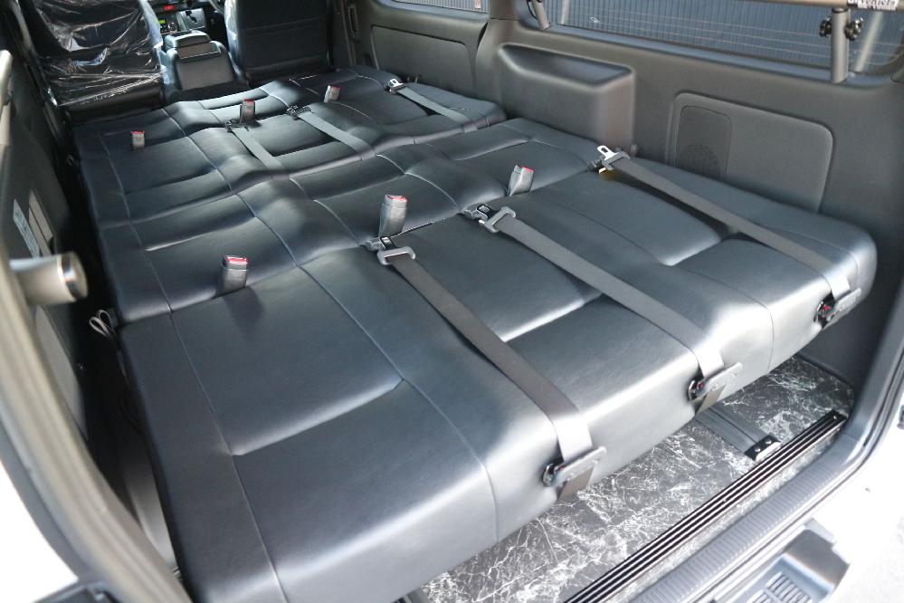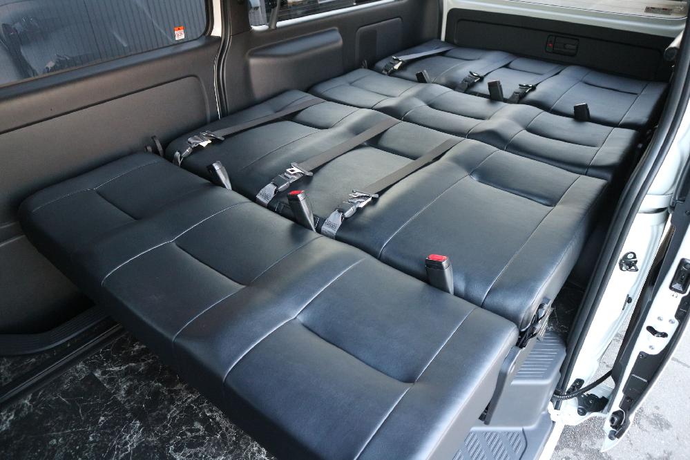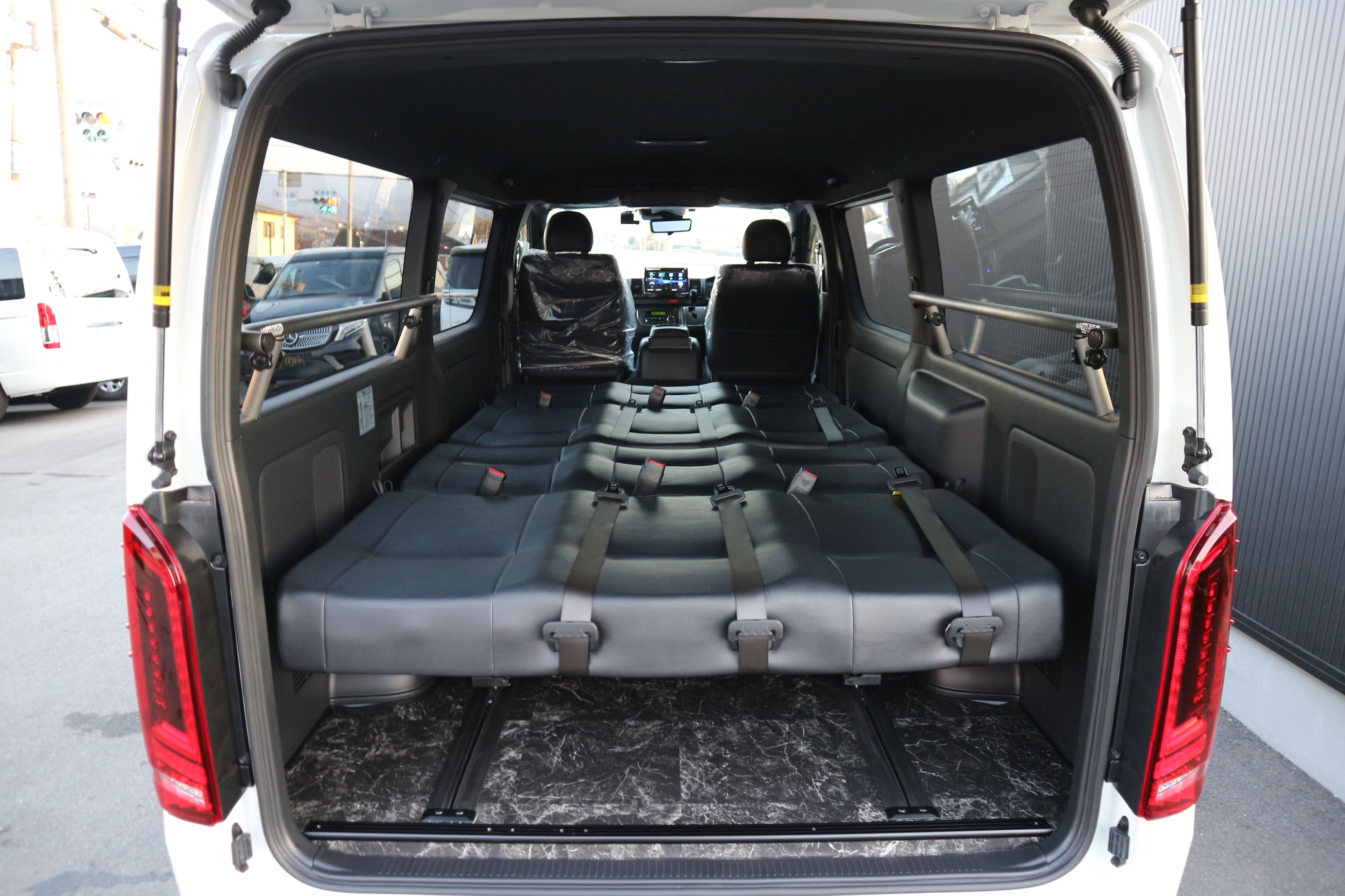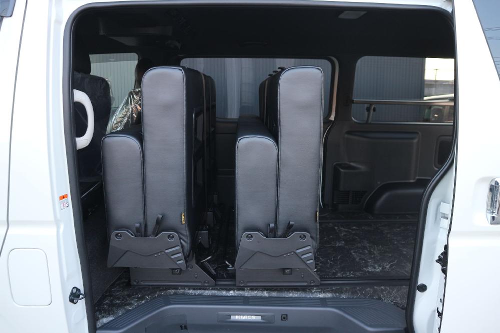 HOME > ギャラリー:IF-VR8/IF-SW8: REVOシート2脚1・4ナンバーのまま8人乗りor3・5ナンバー乗用車登録8人乗り > IF-SW8 200系ハイエースバンS-GLダークプライムU ナローボディー REVOシート2脚8人乗り施工