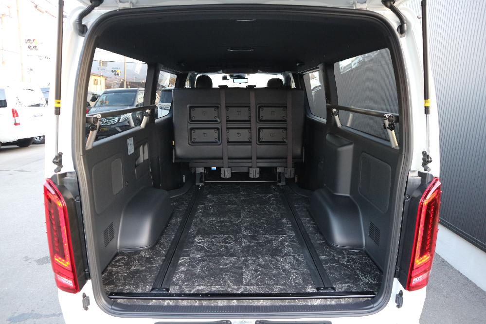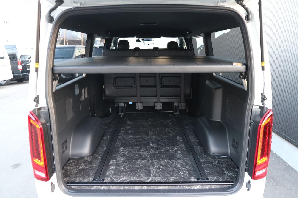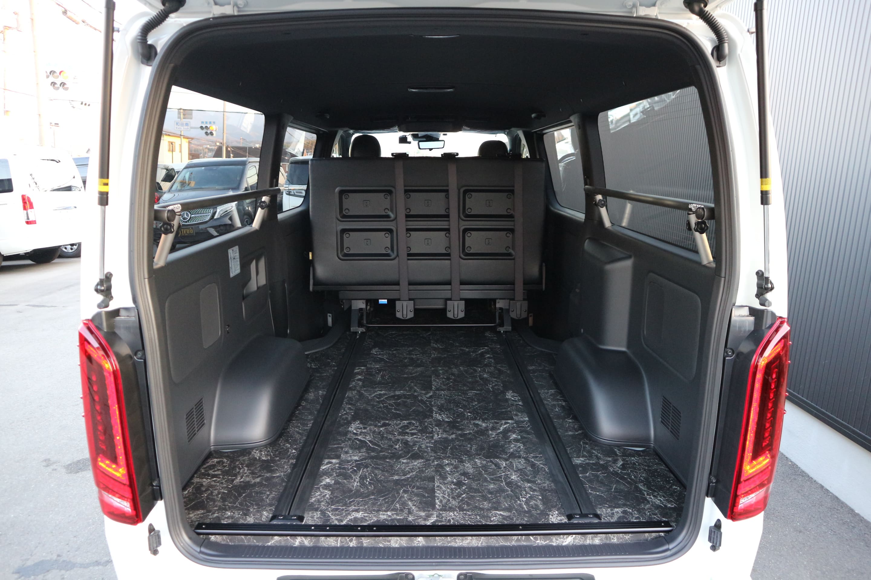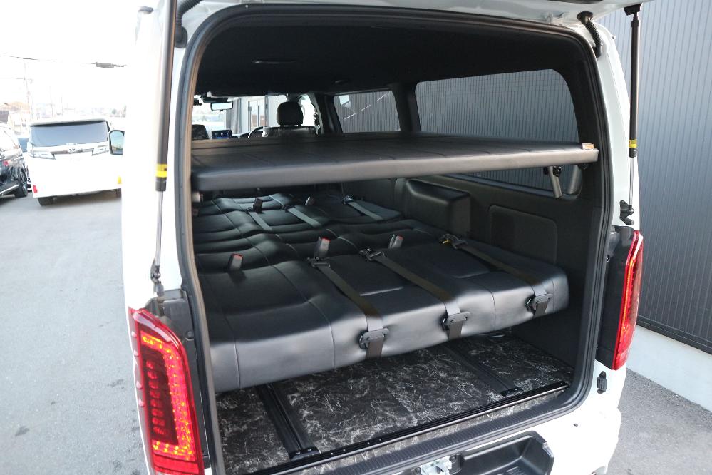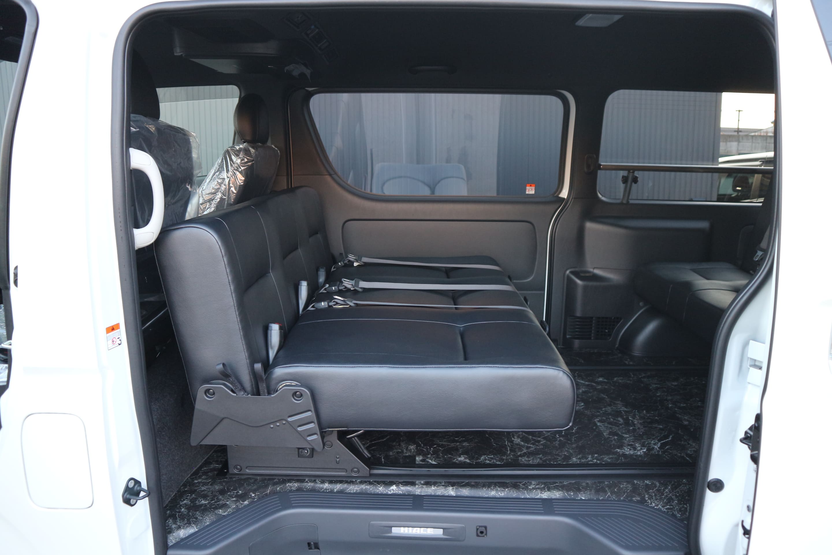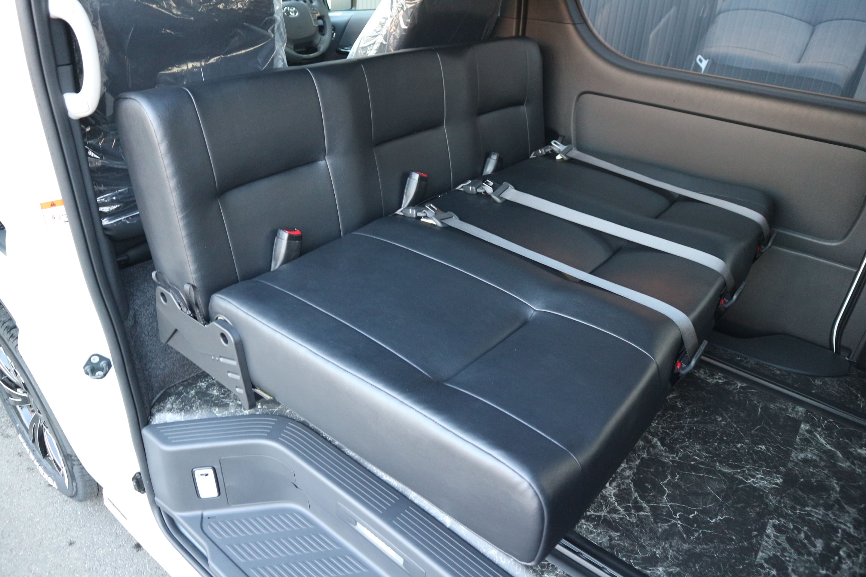 HOME > ギャラリー:IF-VR8/IF-SW8: REVOシート2脚1・4ナンバーのまま8人乗りor3・5ナンバー乗用車登録8人乗り > IF-SW8 200系ハイエースバンS-GLダークプライムU ナローボディー REVOシート2脚8人乗り施工