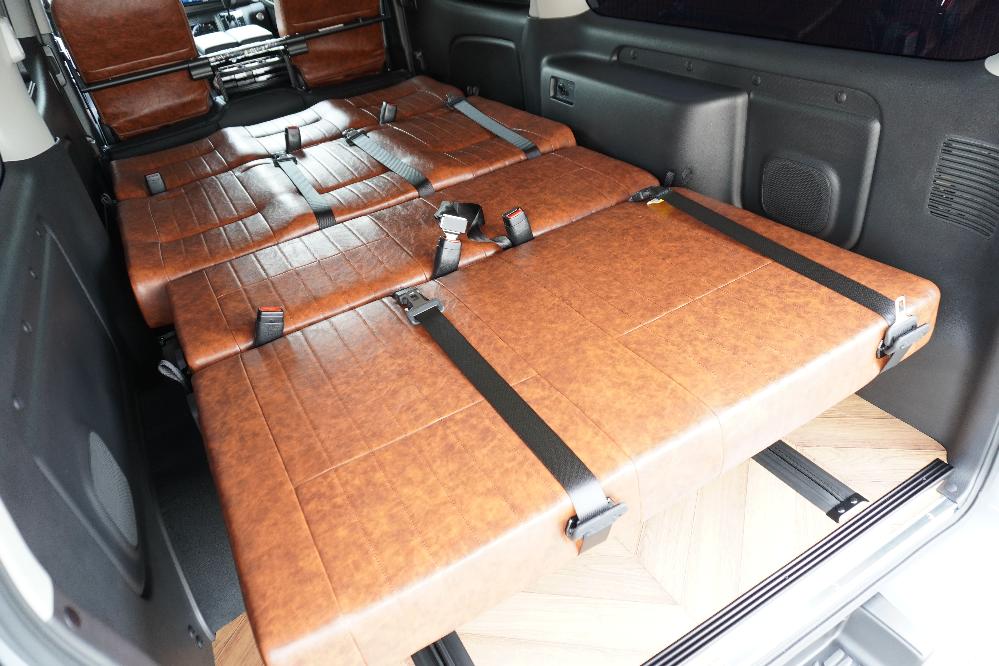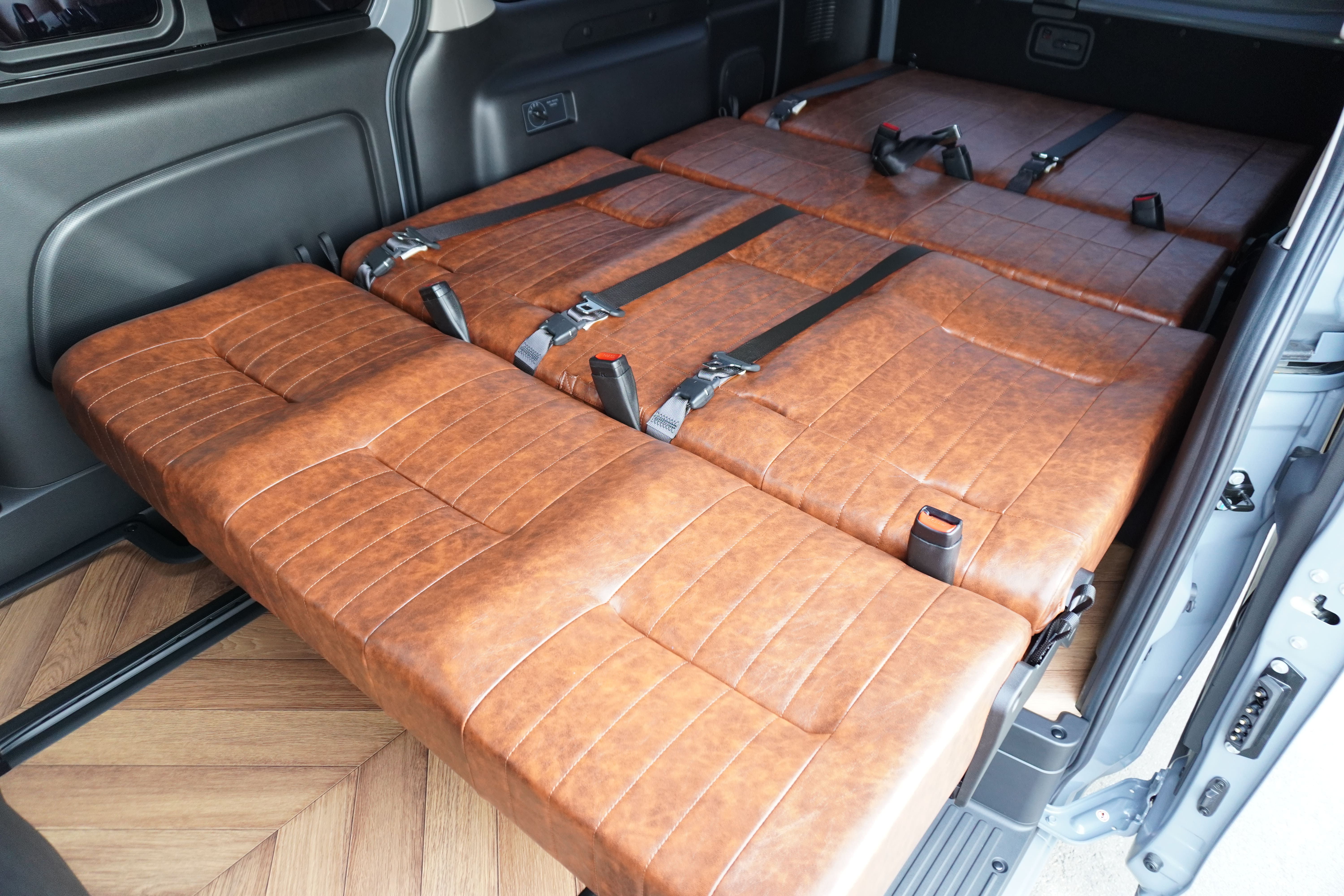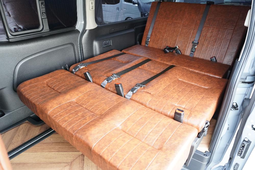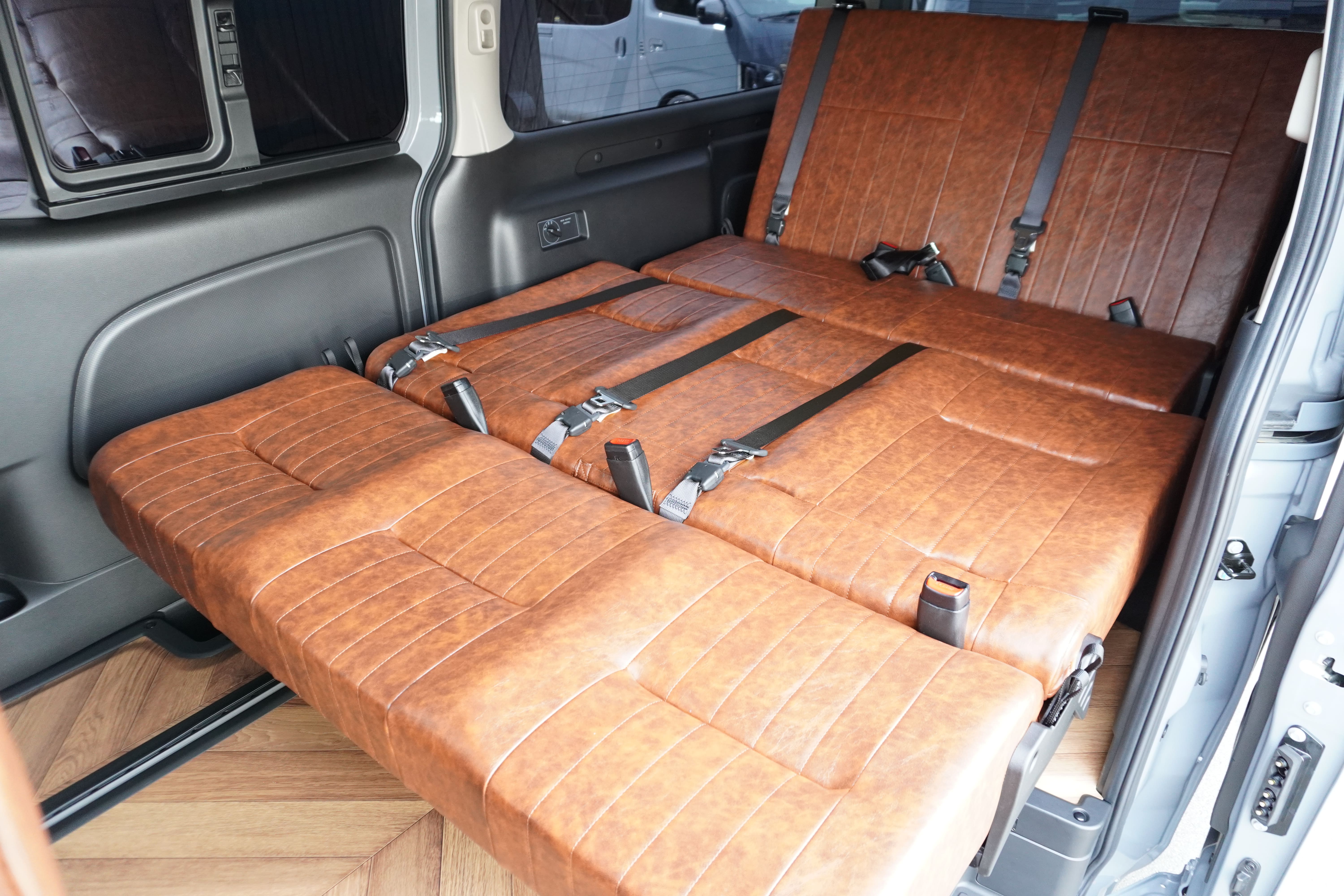 3列目T−REVO1200mmフラットシート 全席3点式シートベルト シート生地 はりのあるかため シートデザイン オーダーシートデザイン(ヴィンテージブラウン)
