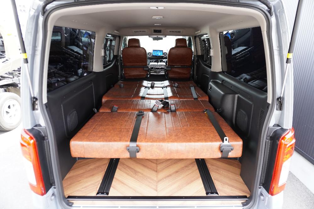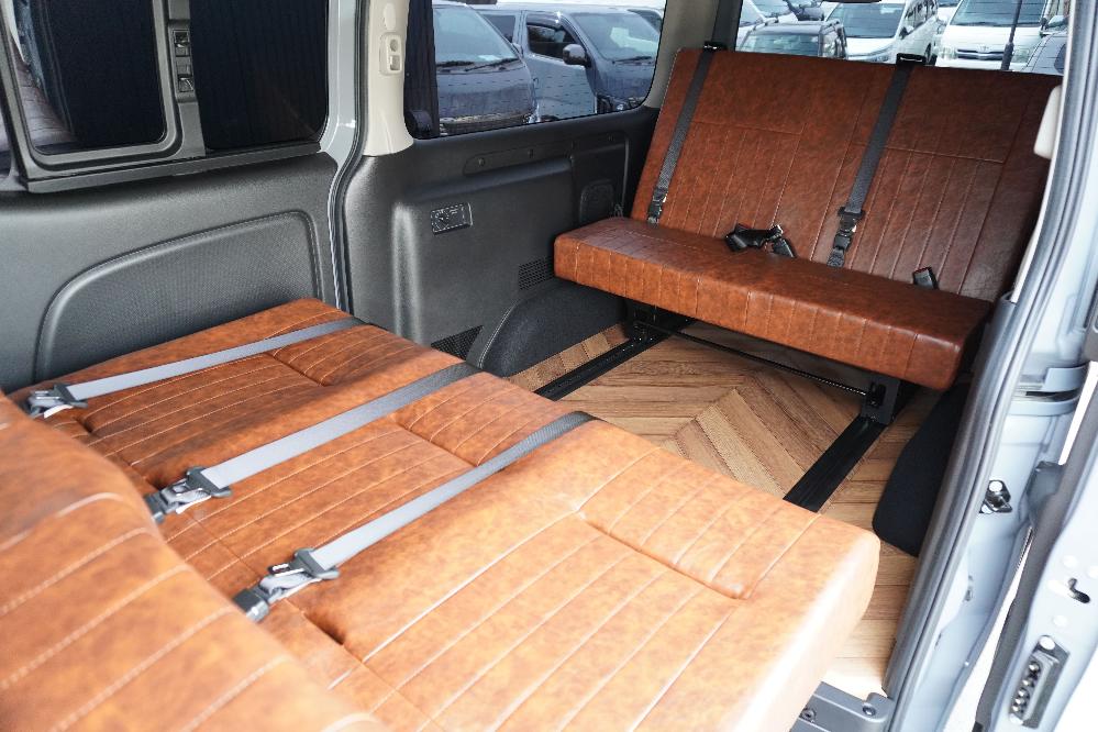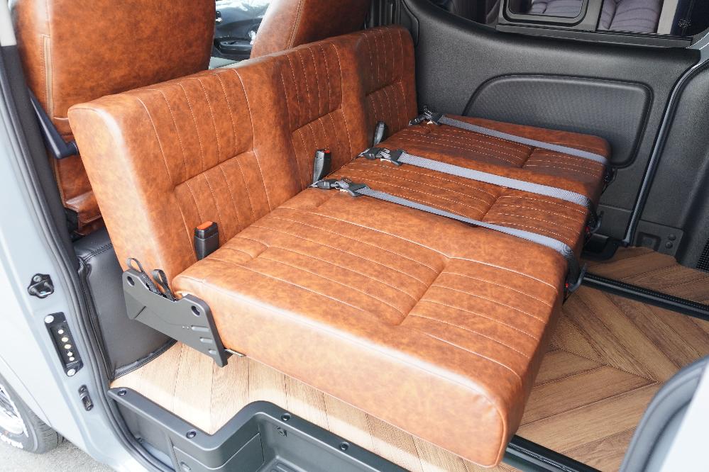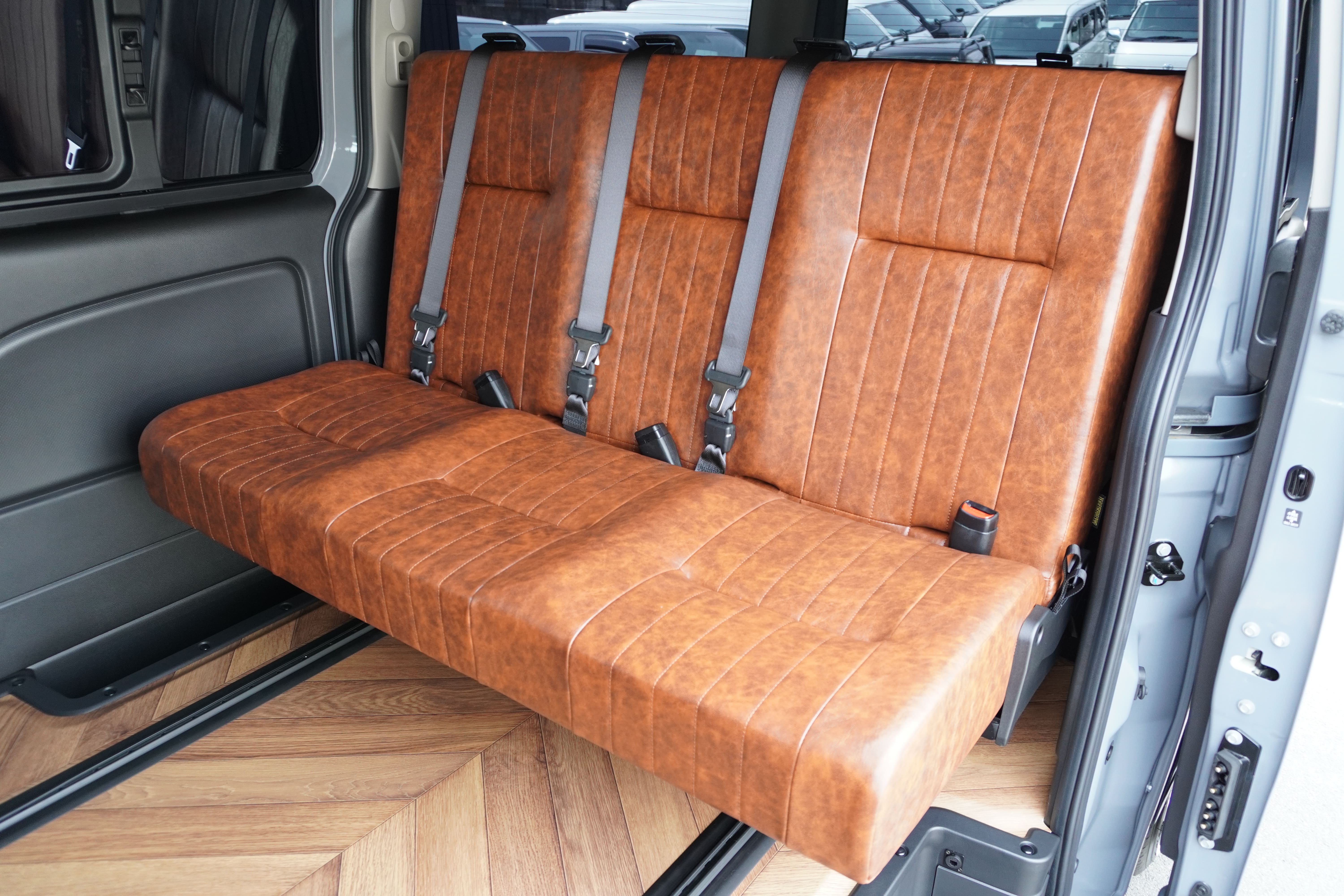 3列目T−REVO1200mmフラットシート 全席3点式シートベルト シート生地 はりのあるかため シートデザイン オーダーシートデザイン(ヴィンテージブラウン)