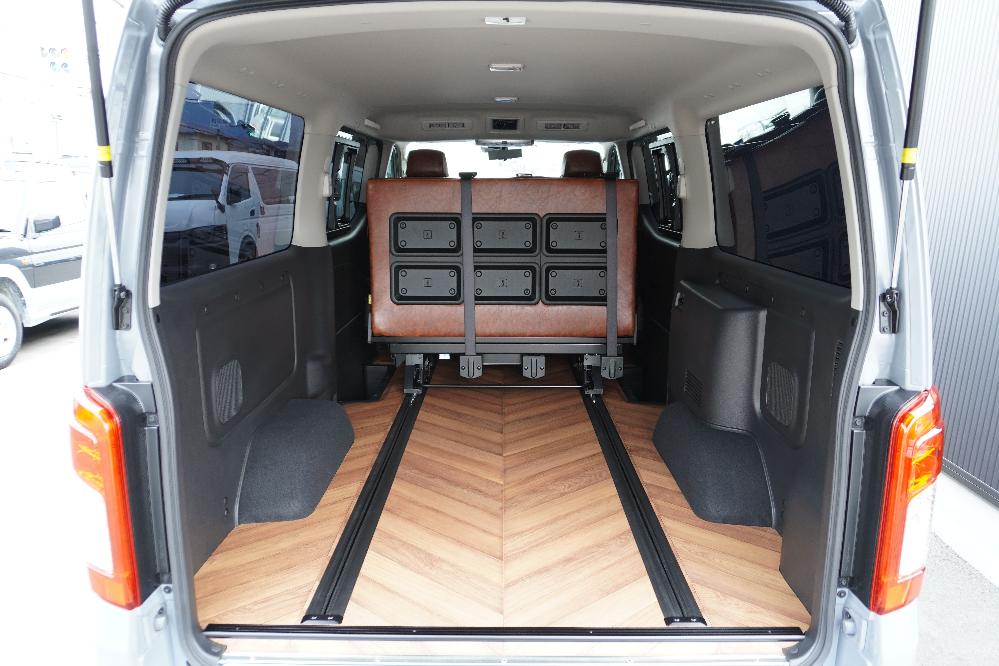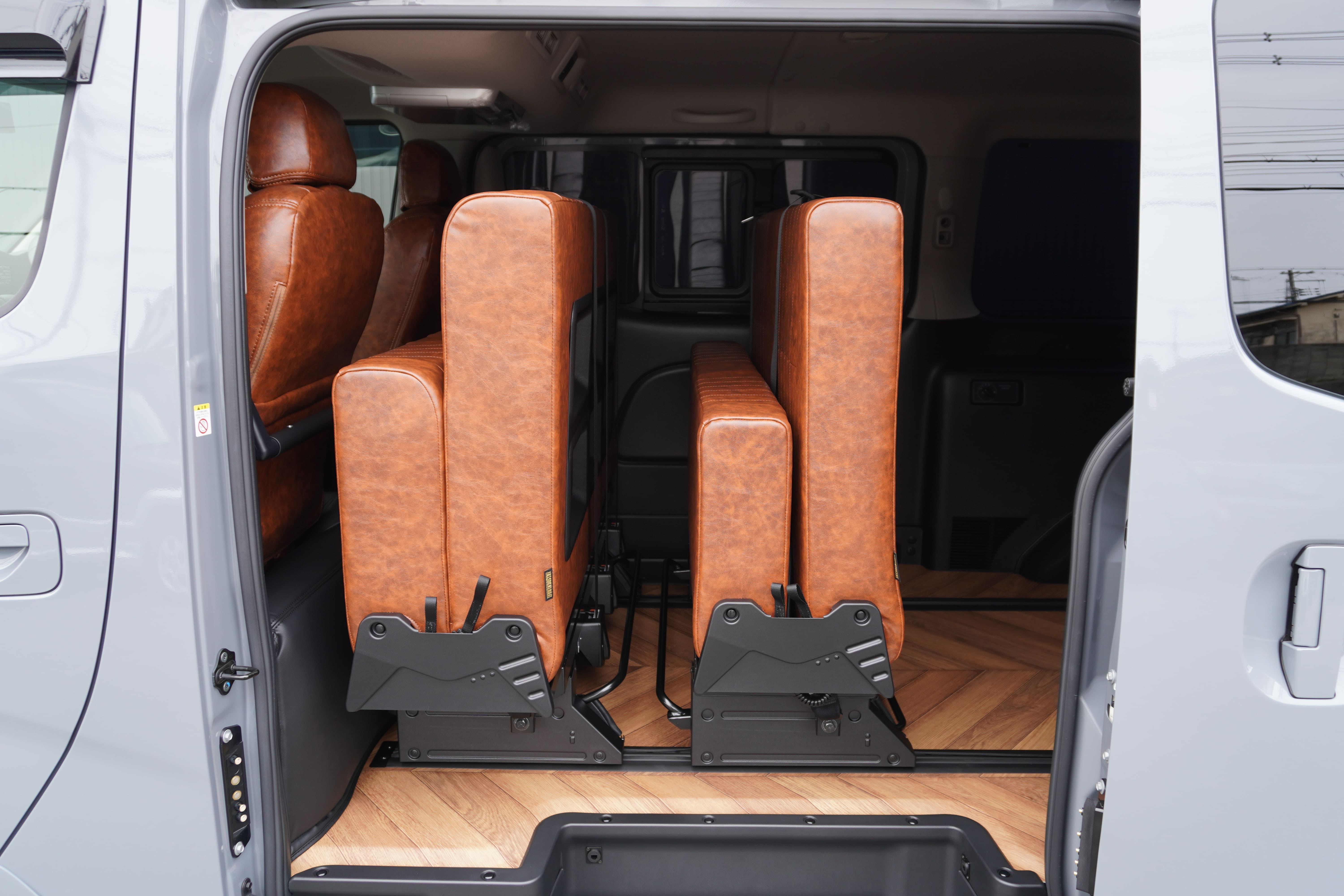 HOME > ギャラリー:IF-VR8/IF-SW8: REVOシート2脚1・4ナンバーのまま8人乗りor3・5ナンバー乗用車登録8人乗り > IF-VR8 キャラバン グランドプレミアムGX ナローボディー T-REVOシート2脚8人乗り施工