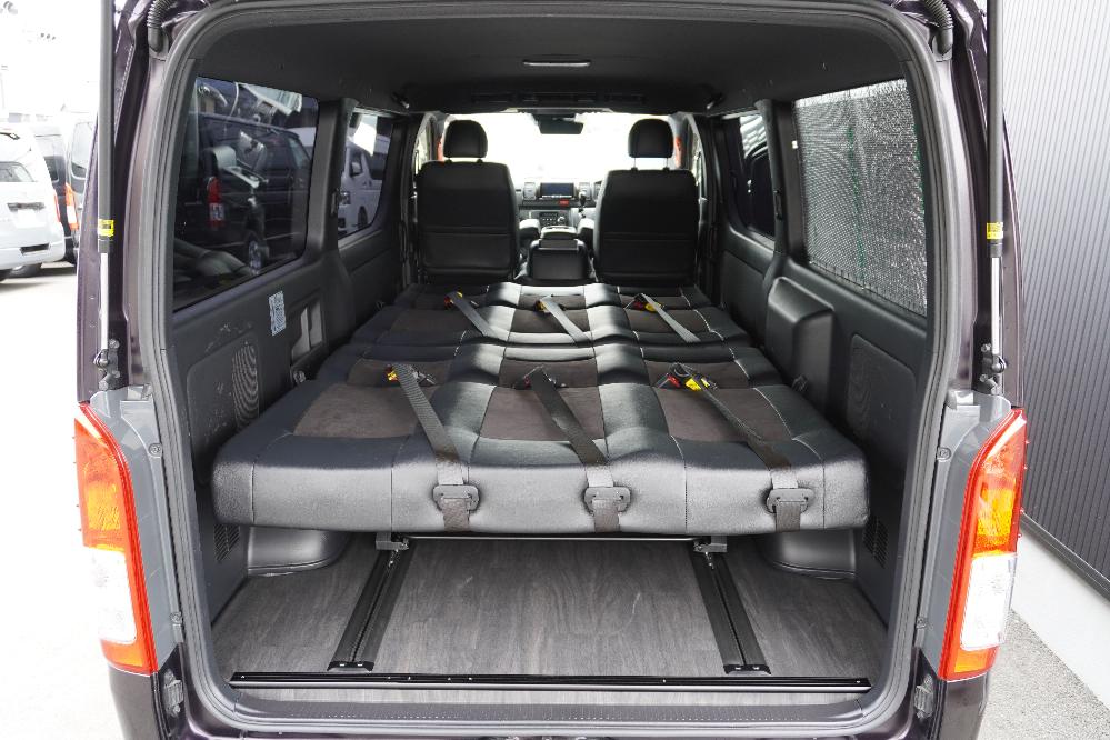 HOME > ギャラリー:IF-VR8/IF-SW8: REVOシート2脚1・4ナンバーのまま8人乗りor3・5ナンバー乗用車登録8人乗り > IF-VR8 200系ハイエースバンS-GL ナローボディー T-REVOシート2脚8人乗り施工