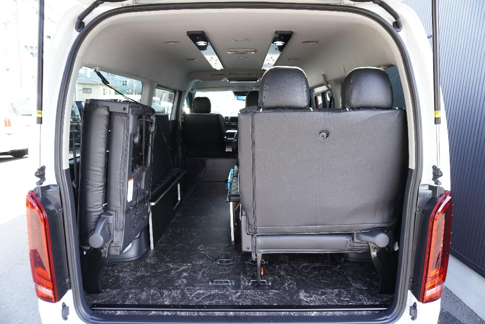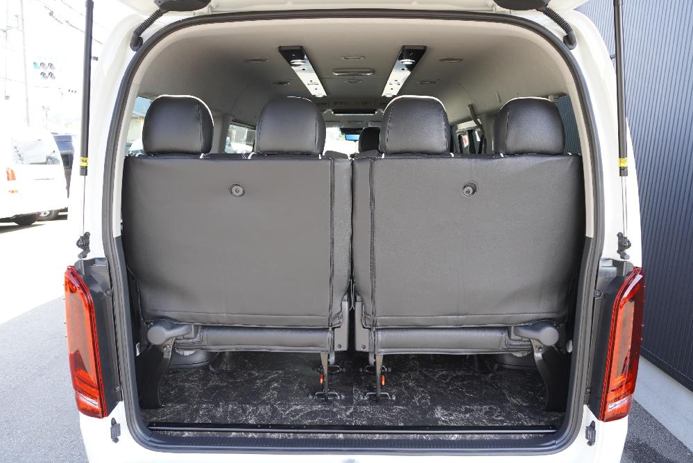 3列目後ろ向き2名シート展開 ベットマット背もたれ展開 後ろ向き専用シートベルト搭載