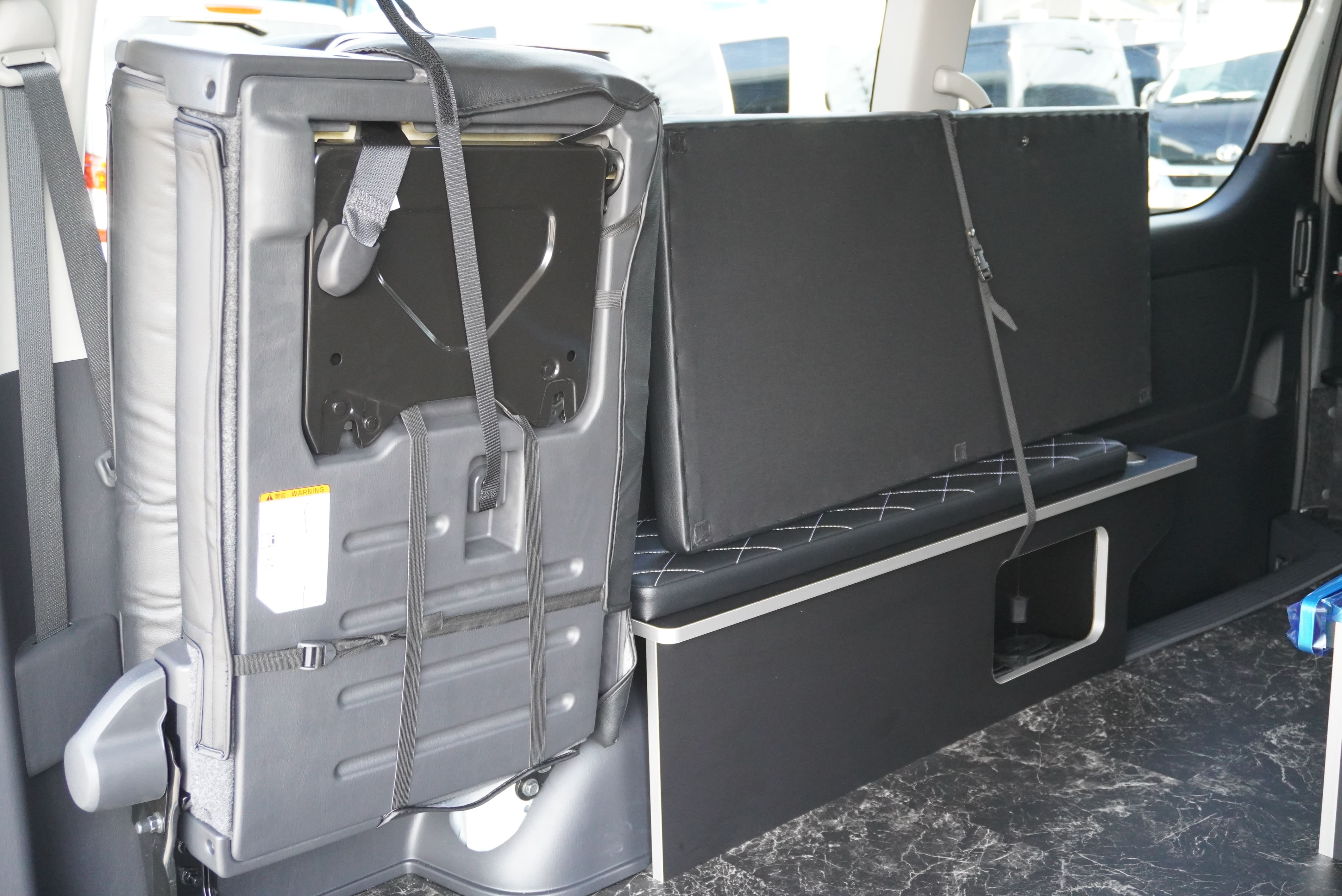対面ラウンジ展開 2列目ワゴンGL純正2名シート 3列目ワゴンGL純正シート取り外し IF-WB8後ろ向き2名専用ベット家具