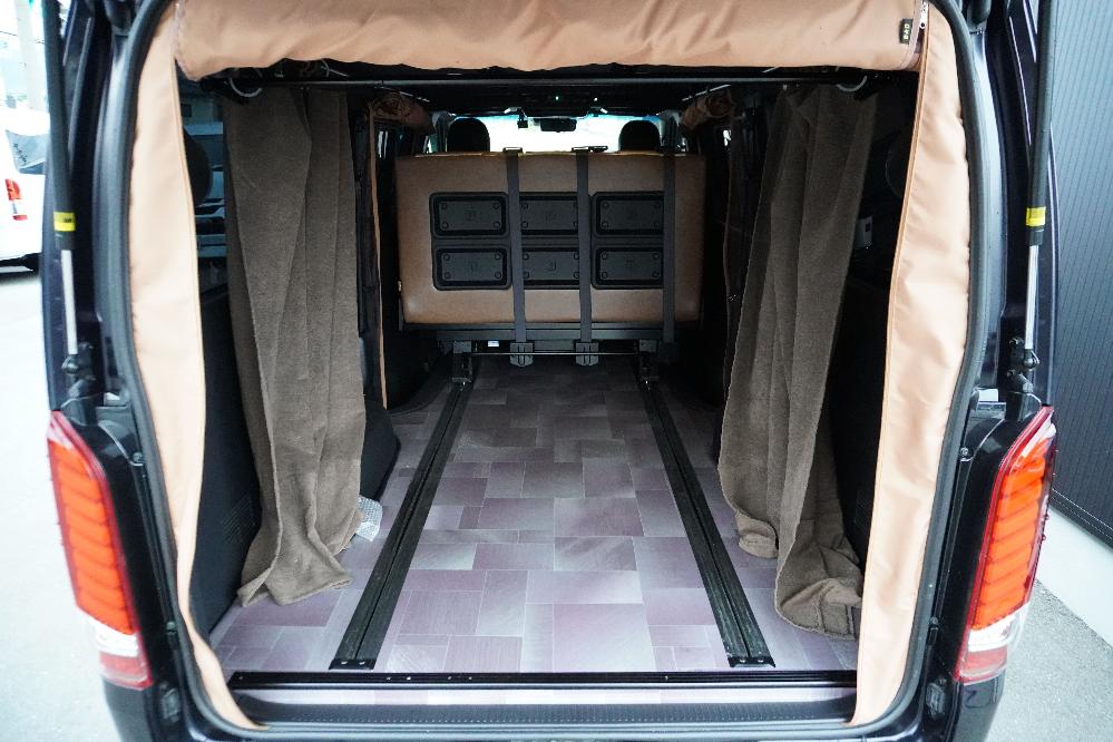 HOME > ギャラリー:IF-VX8/IF-SX8/IF-WX8: X(クロス)シート/REVOシート1・4ナンバーのまま8人乗りor3・5ナンバー乗用車登録8人乗り > IF-VX8 200系ハイエースバンS-GLダークプライムU ナローボディ X(クロス)シート1脚T-REVOシート1脚8人乗り