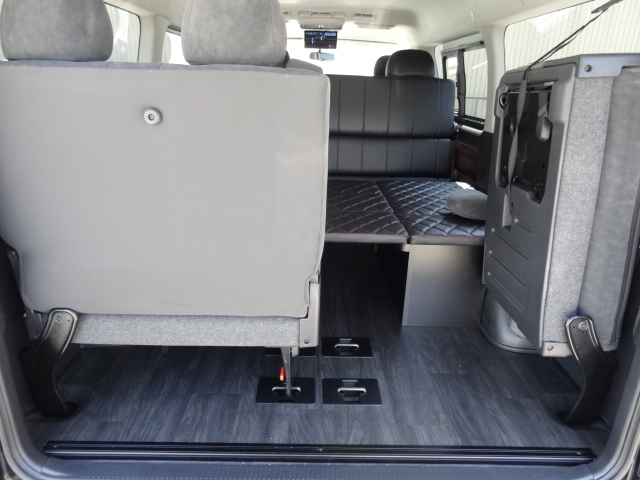 HOME > ギャラリー:IF-WR9 : REVOシートハイエースワゴン2列目I-seatREVOシート3人掛け > IF-WR9 200系4型ハイエースワゴンGL I-seatREVOシート ベット家具9人乗り施工