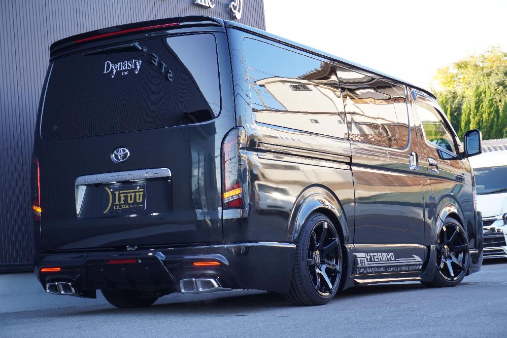 4ナンバー5人乗り DynastyEXIST EVOエアロパッケージ 2,990,000 DynastyEXIST EVOフロントバンパー DynastyGROUNDボンネットパネル DynastyGROUNDオーバーフェンダー DynastyEXISTサイドステップ DynastyEXISTリアウイング DynastyEXISTリアバンパー DynastyEXIST左右出しマフラーカッター DynastyVELVET18inVS7アルミ IFUU欧州車デザインバケットシートカバー IFUUベッドキット IFUUIndustryセパレートセンターコンソール IFUU3D成形セパレートラバーフロアマット マホガニーウッドインテリアパネル マホガニーウッドコンビハンドル マホガニーウッドコンビシフトノブ LEDルームランプ クリスタルルームランプレンズカバー TOYOTA純正ナビ バックカメラ ETC