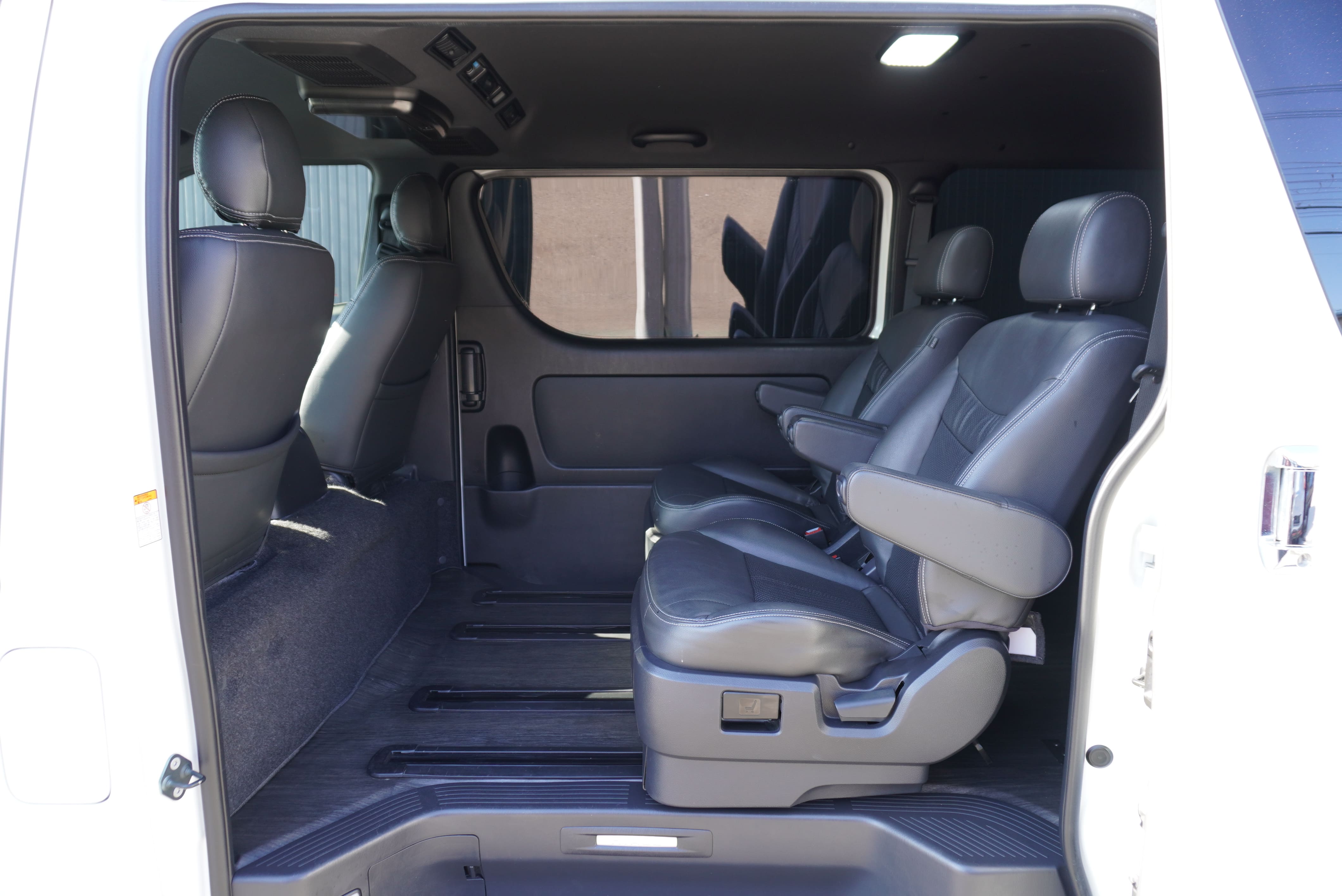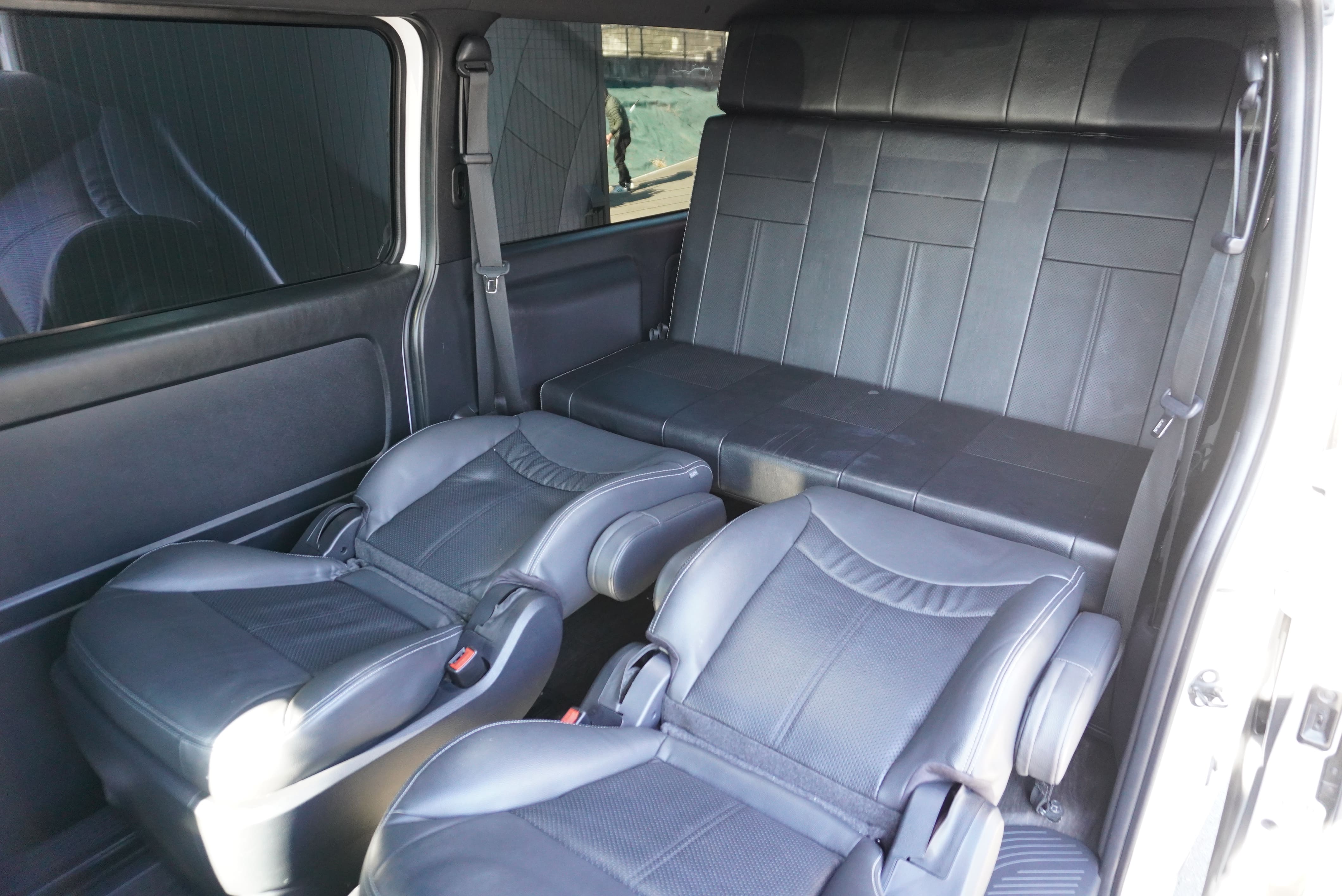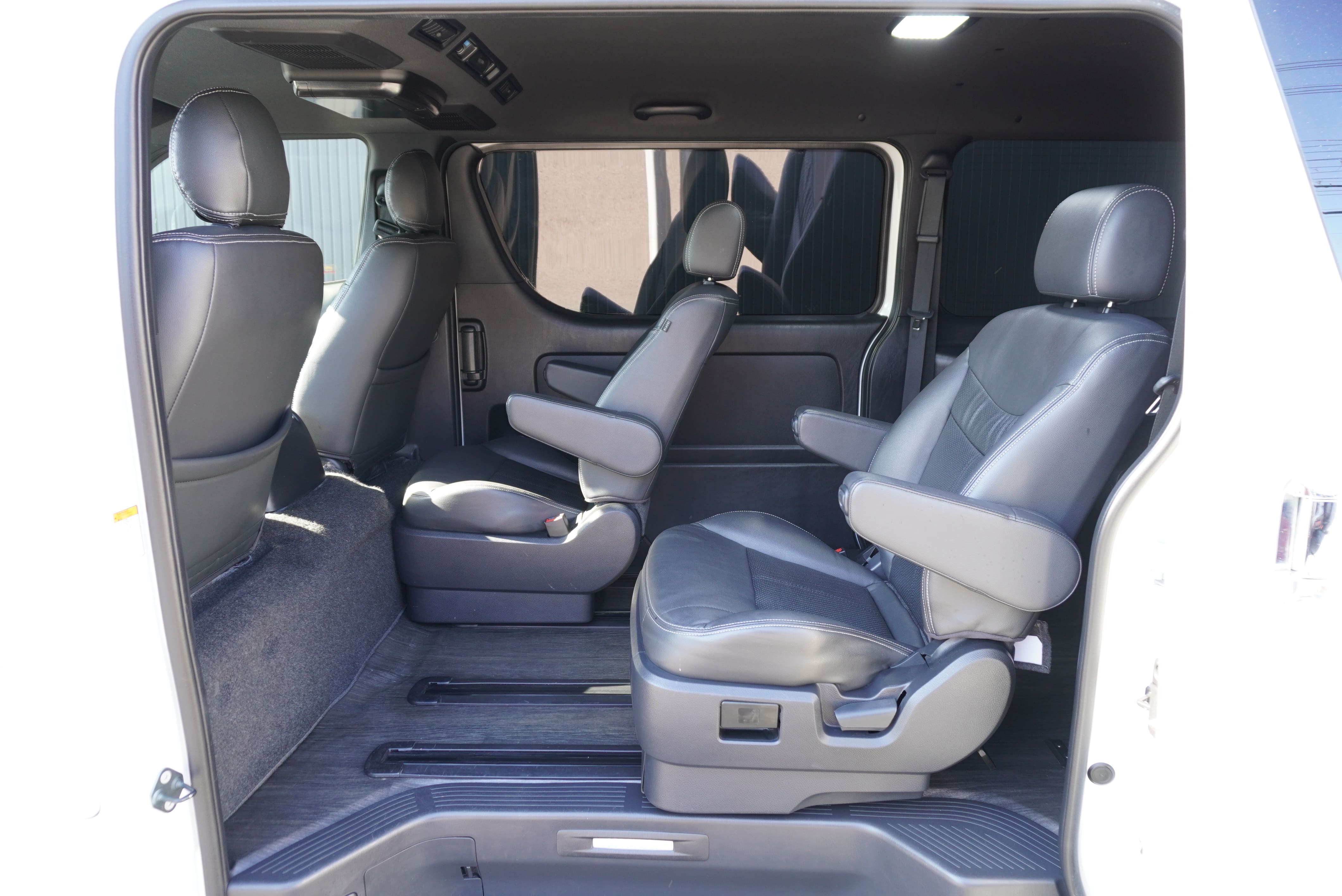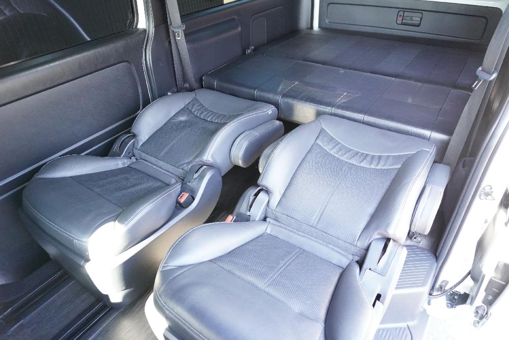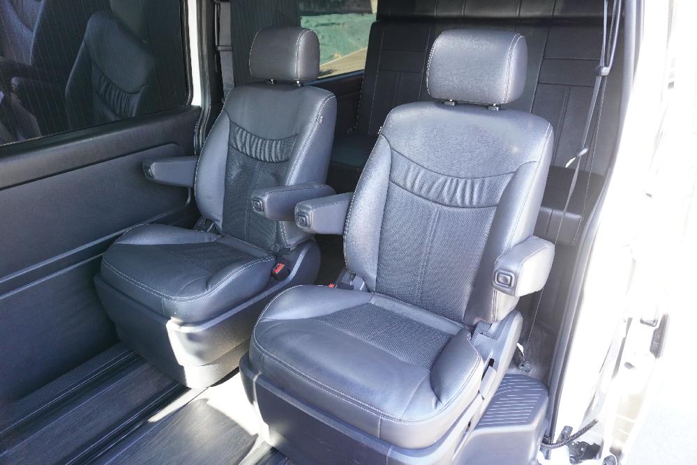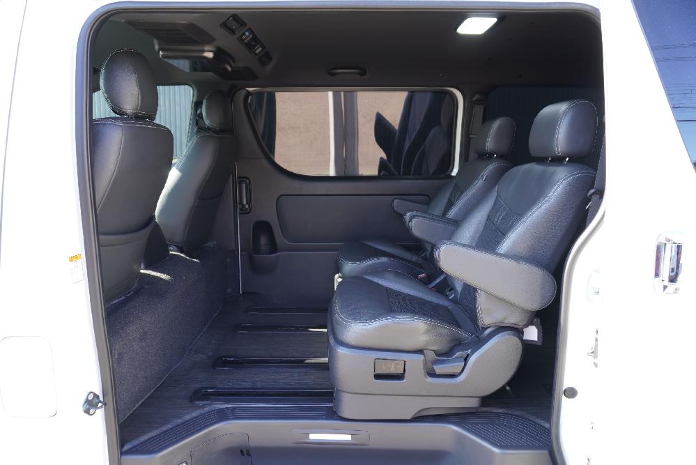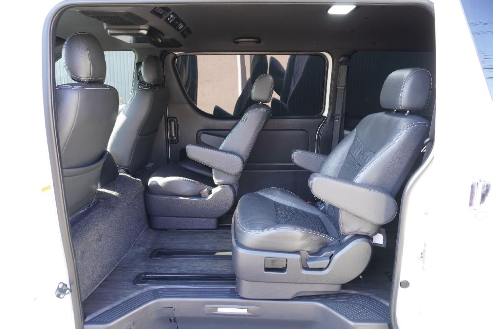 大人気買取車輌入庫!キャプテンシート2脚T−REVOシート1脚搭載5ナンバー乗用車登録7人乗りシートアレンジオーダーカスタム施工!パナソニック10inナビにフリップダウンモニター!