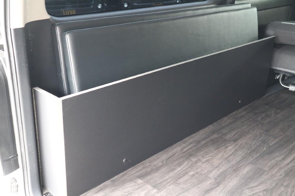 ベットマット両サイド収納可能!フロアにビス打ちしない独自の施工技術にて凹凸の無い新品フロアフローリング施工仕上げ!